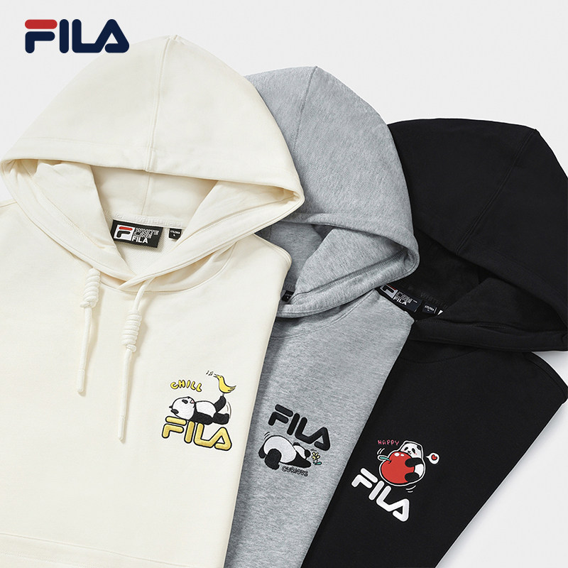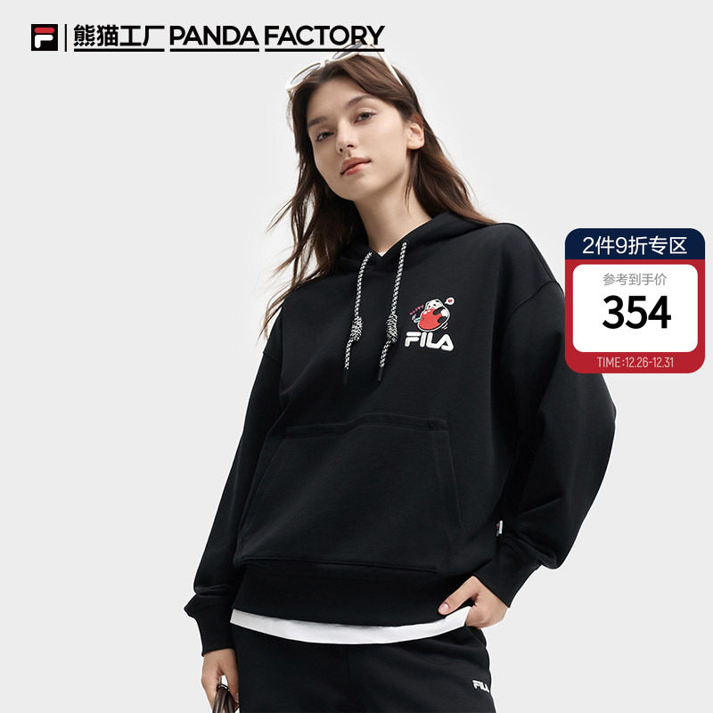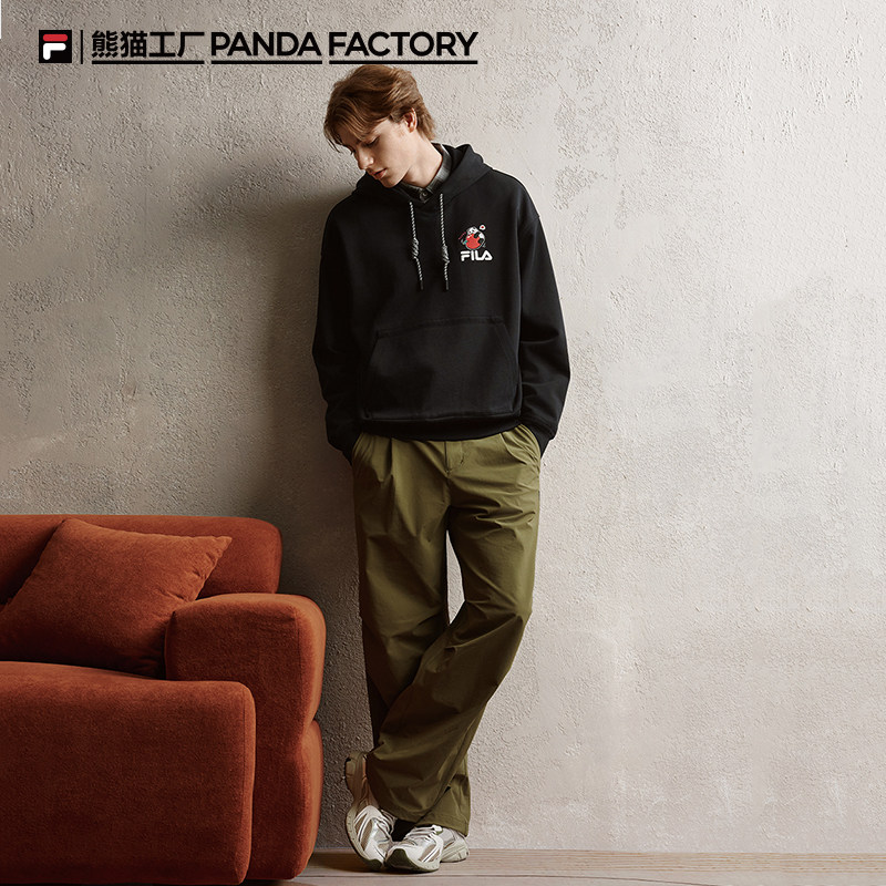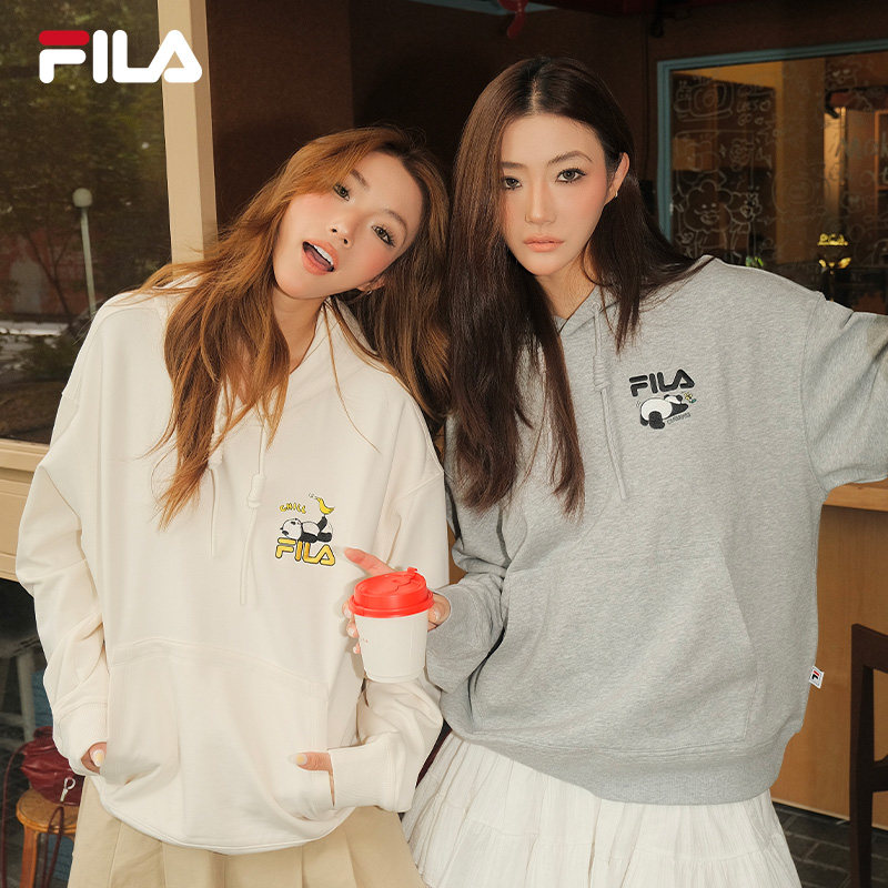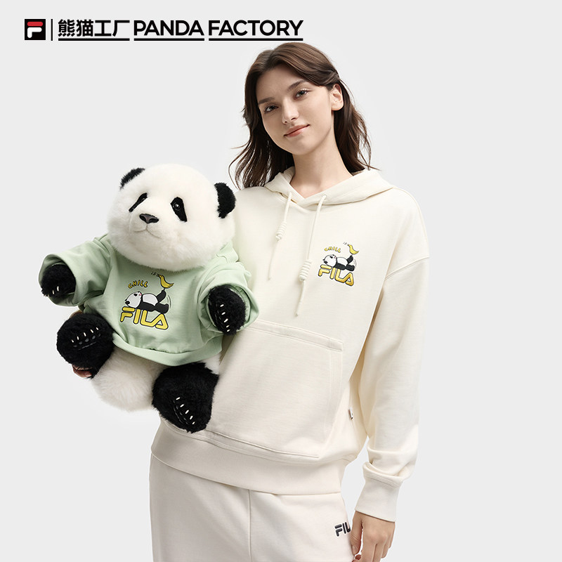 FILA斐乐熊猫男女同款卫衣2025秋新品宽松情侣连帽宽松运动上衣