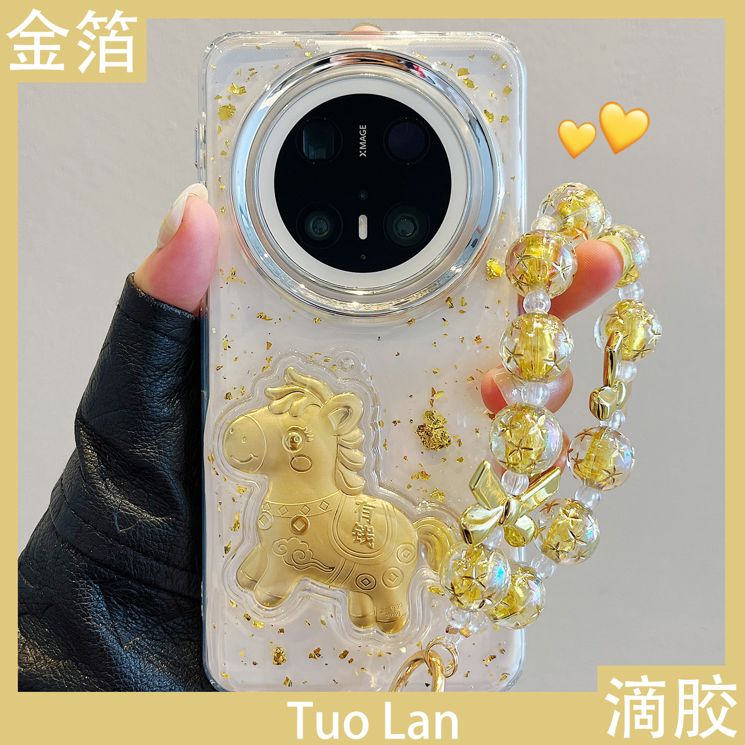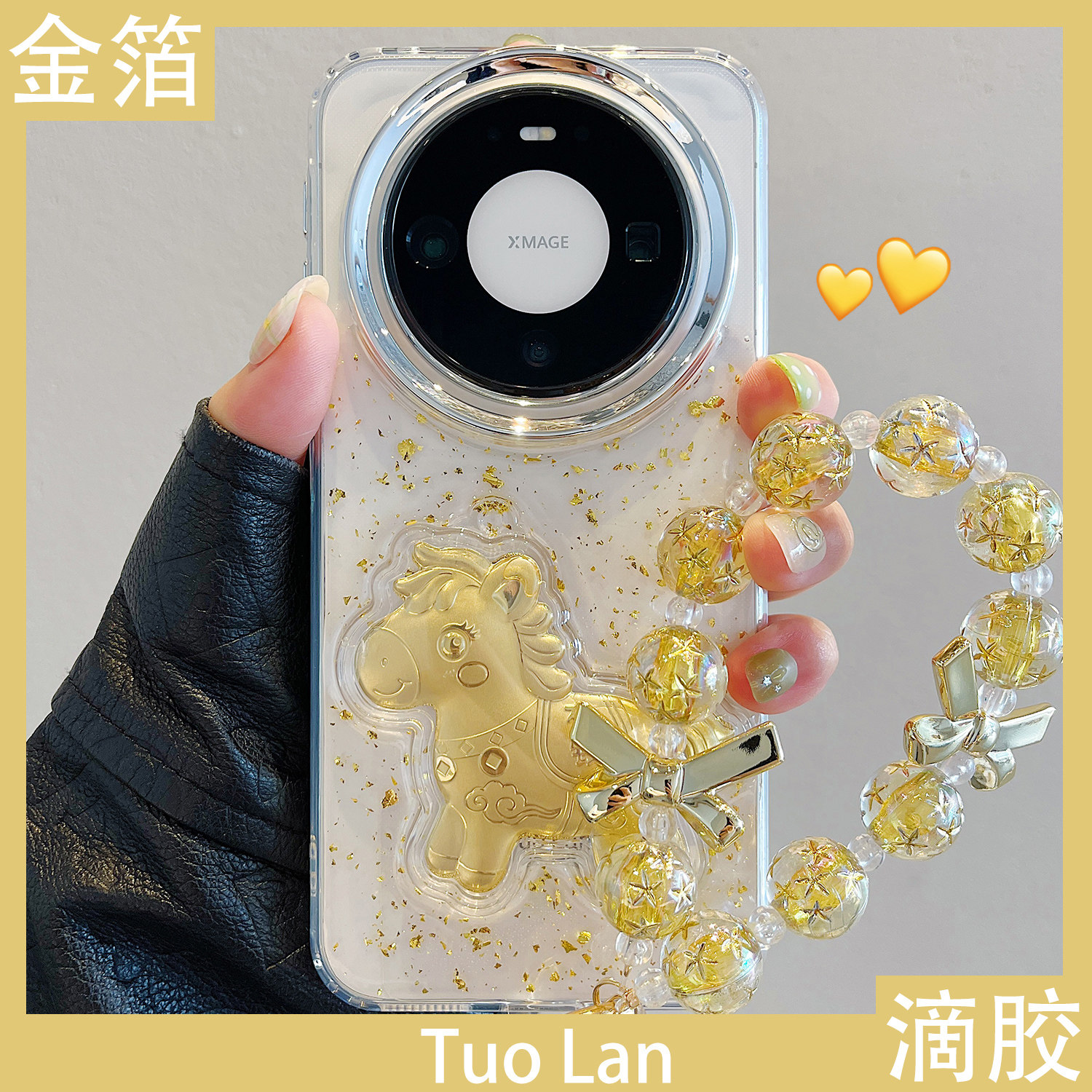 拓岚 适用华为mate70pro+新款手机壳mate60pro滴胶mate80透明金箔金色马上有钱mate80promax新年挂绳情侣男女