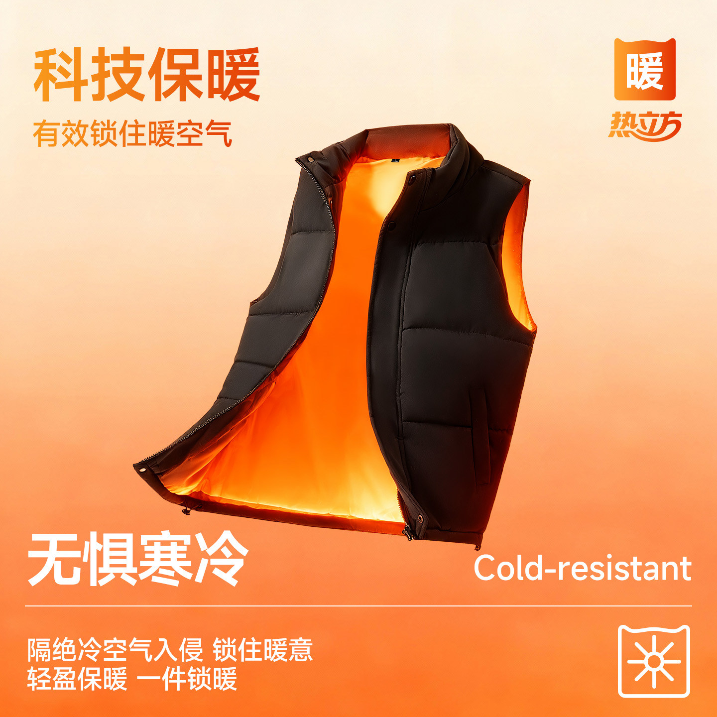 猫人背心马甲男冬季无帽运动跑步美式立领加厚保暖纯色男款外套J