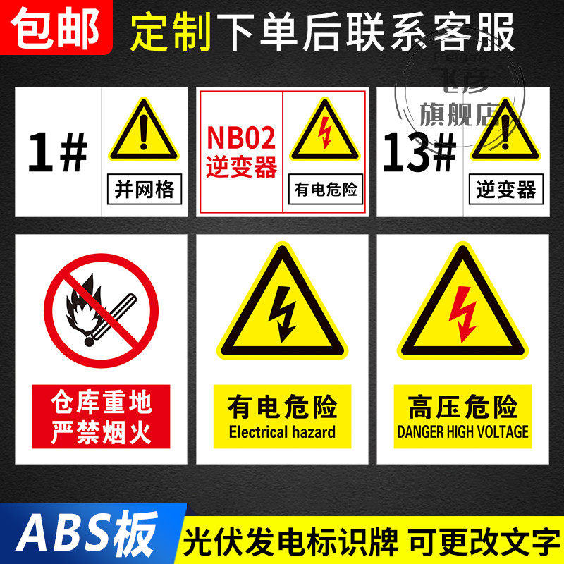 ABS板光伏发电标识牌PVC塑料板逆变器并网柜有电危险高压危险仓库重地标志牌支持定制