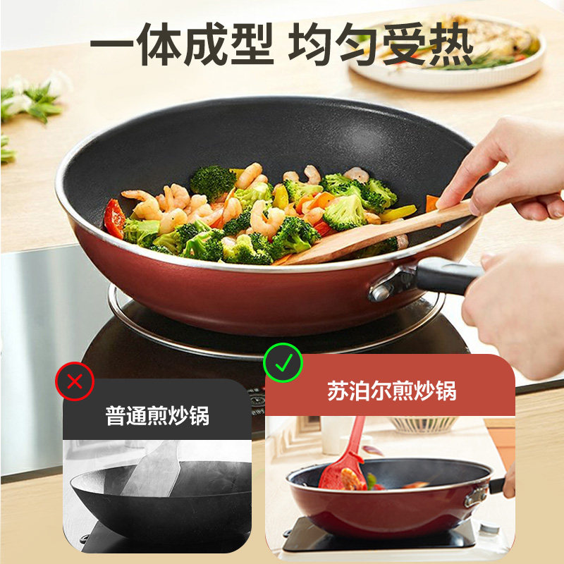 苏泊尔不粘锅炒锅家用炒菜锅电磁炉专用燃气煤气灶适用锅具平底锅