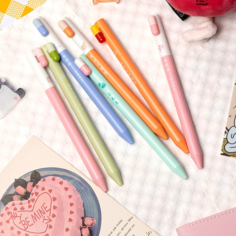 胶囊爱心黑色低重心侧按动ST刷题笔ins高颜值小众耐用顺滑速干中性笔考试必备葫芦头刷题笔0.5mm黑色水笔