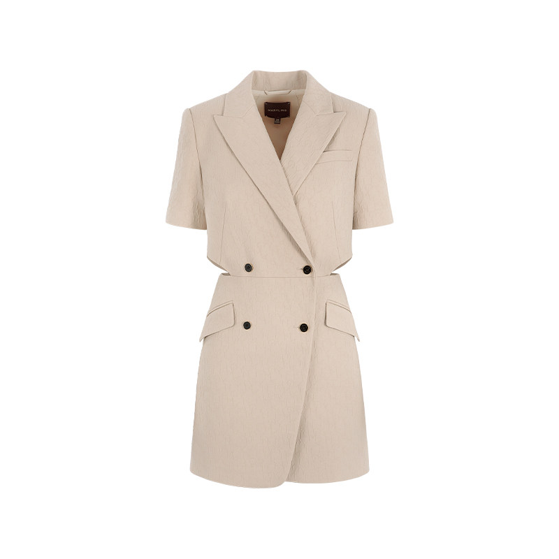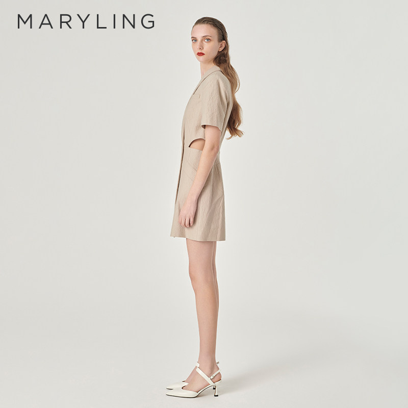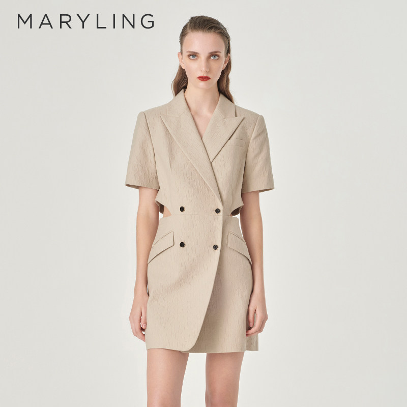 MARYLING玛俪琳2024夏季新品沙色提花西装领短袖连衣裙A1ECW63630