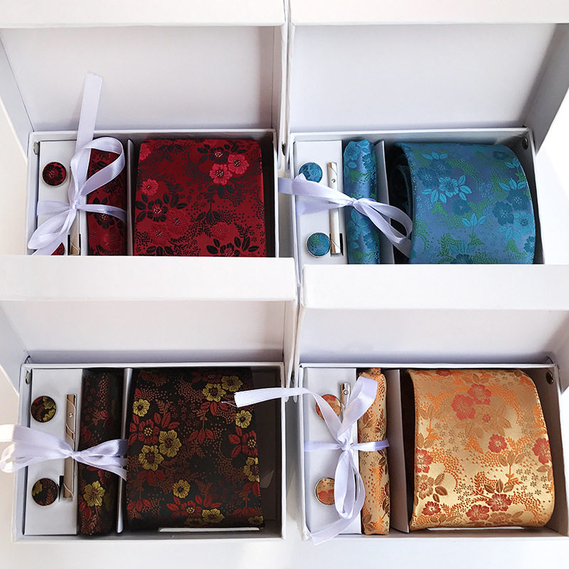 实力商家现货直供男士领带礼盒6件套装佩斯利大花结婚领带套装