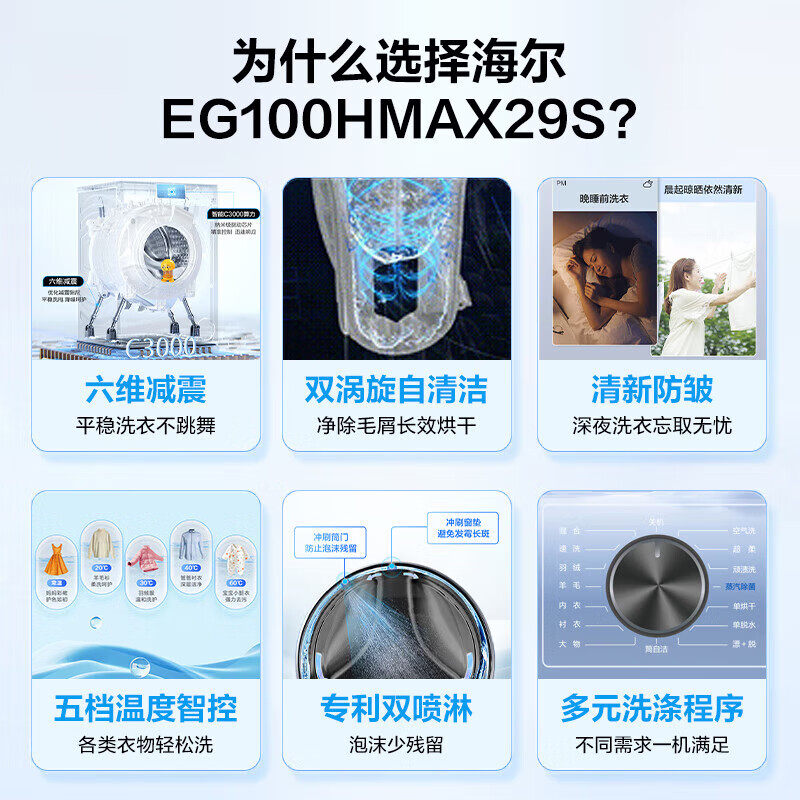 海尔洗衣机全自动家用滚筒洗烘一体10公斤官方正品EG100HMAX29S