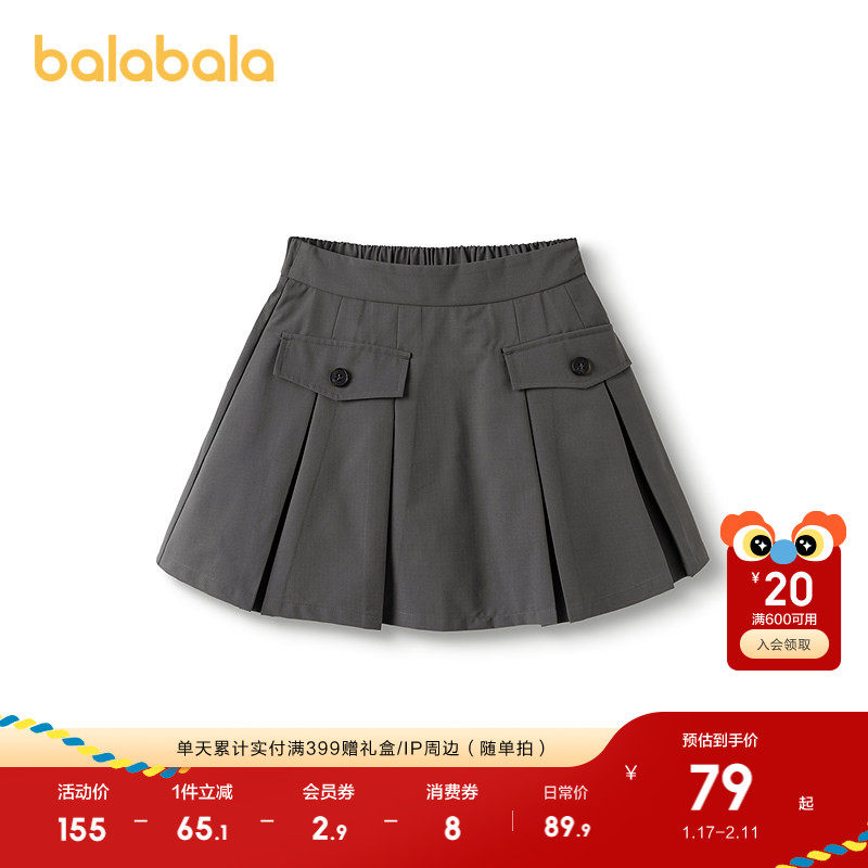 巴拉巴拉童装女童半身裙2025春秋短裙儿童格纹百褶裙子弹力工装风