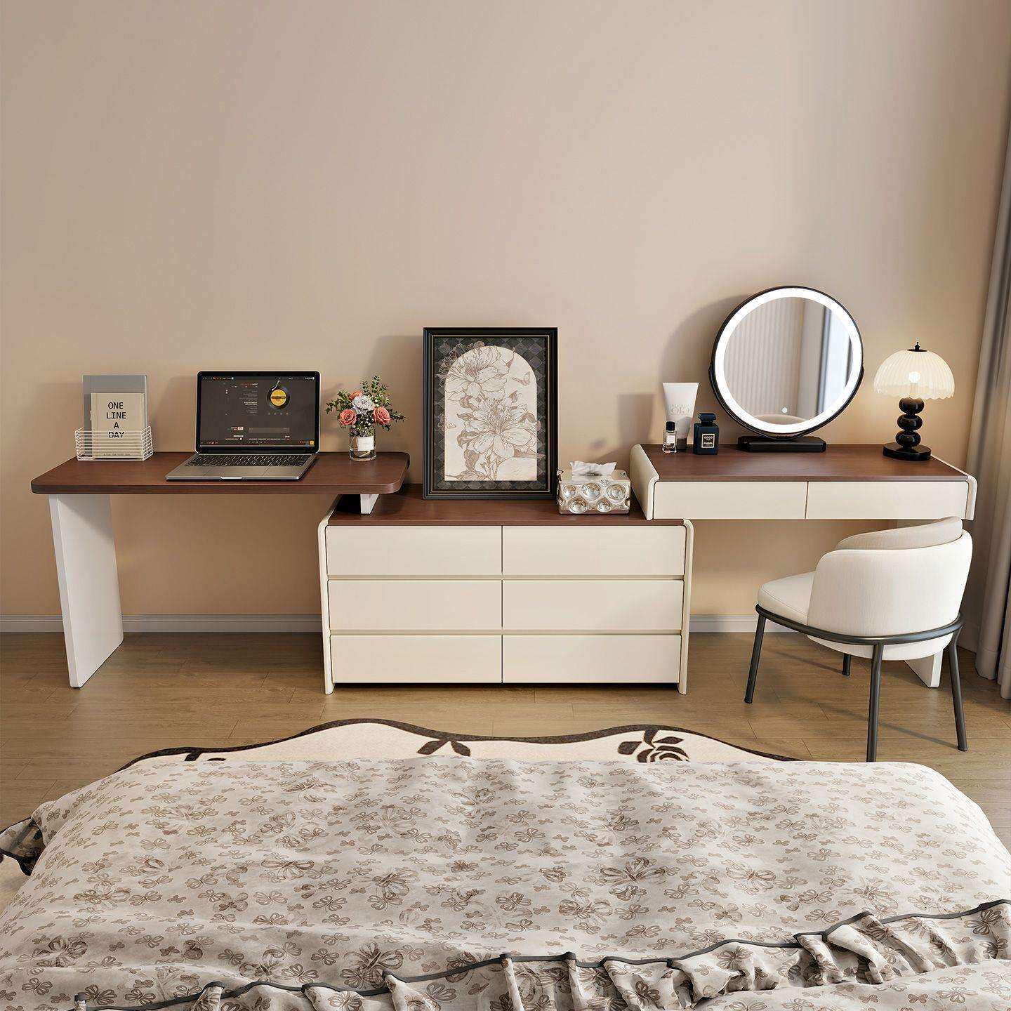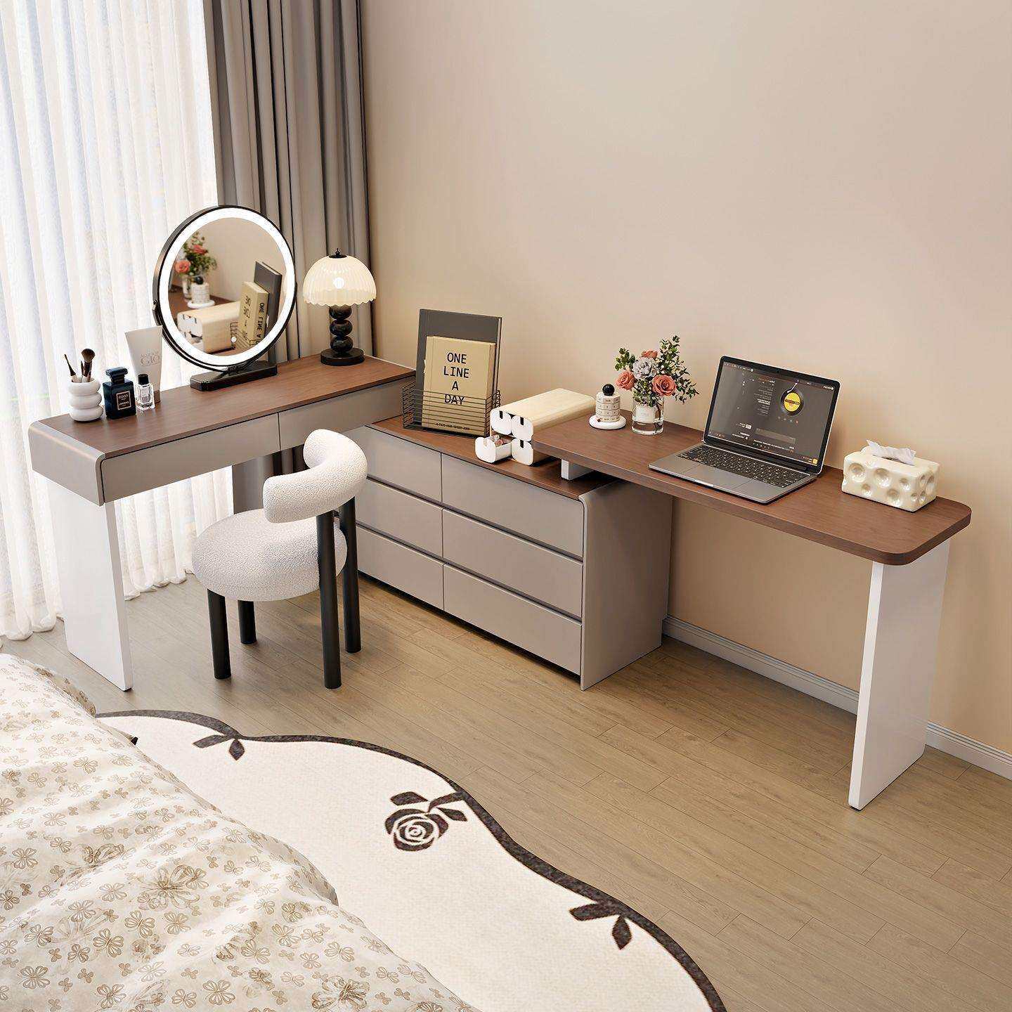 意式轻奢卧室实木梳妆台床尾斗柜一体电脑桌书桌床尾转角柜收纳柜