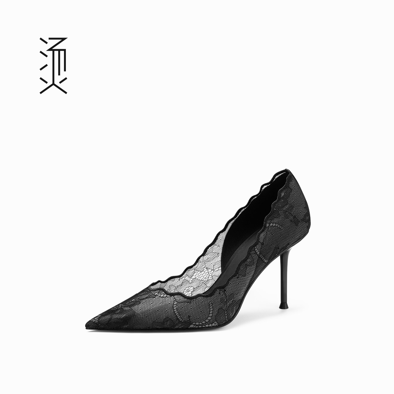 烫黑色蕾丝网纱布面细高跟鞋2026春夏新款性感高级透气质法式单鞋