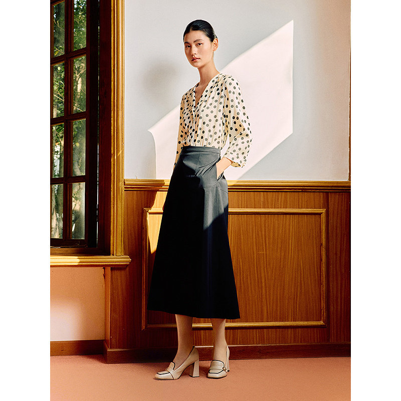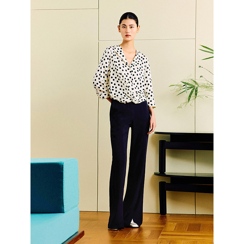 【真丝系列】 YINER音儿2025夏季新款翻V领波点桑蚕丝衬衫上衣
