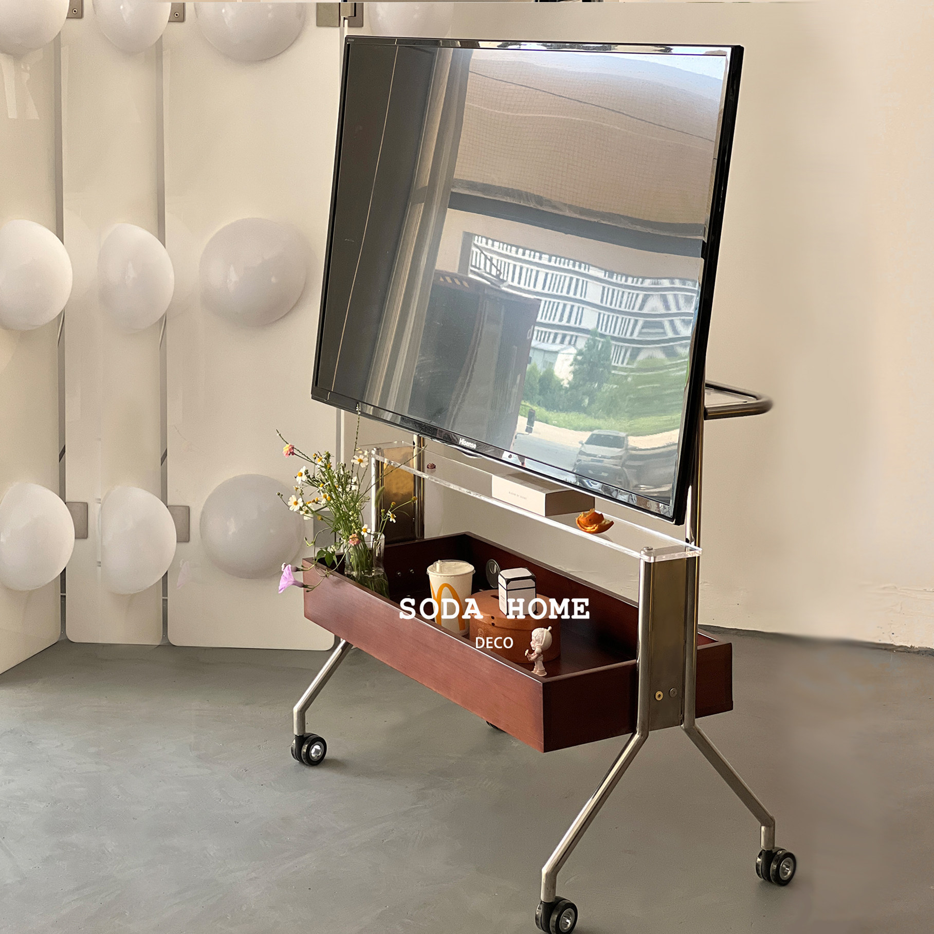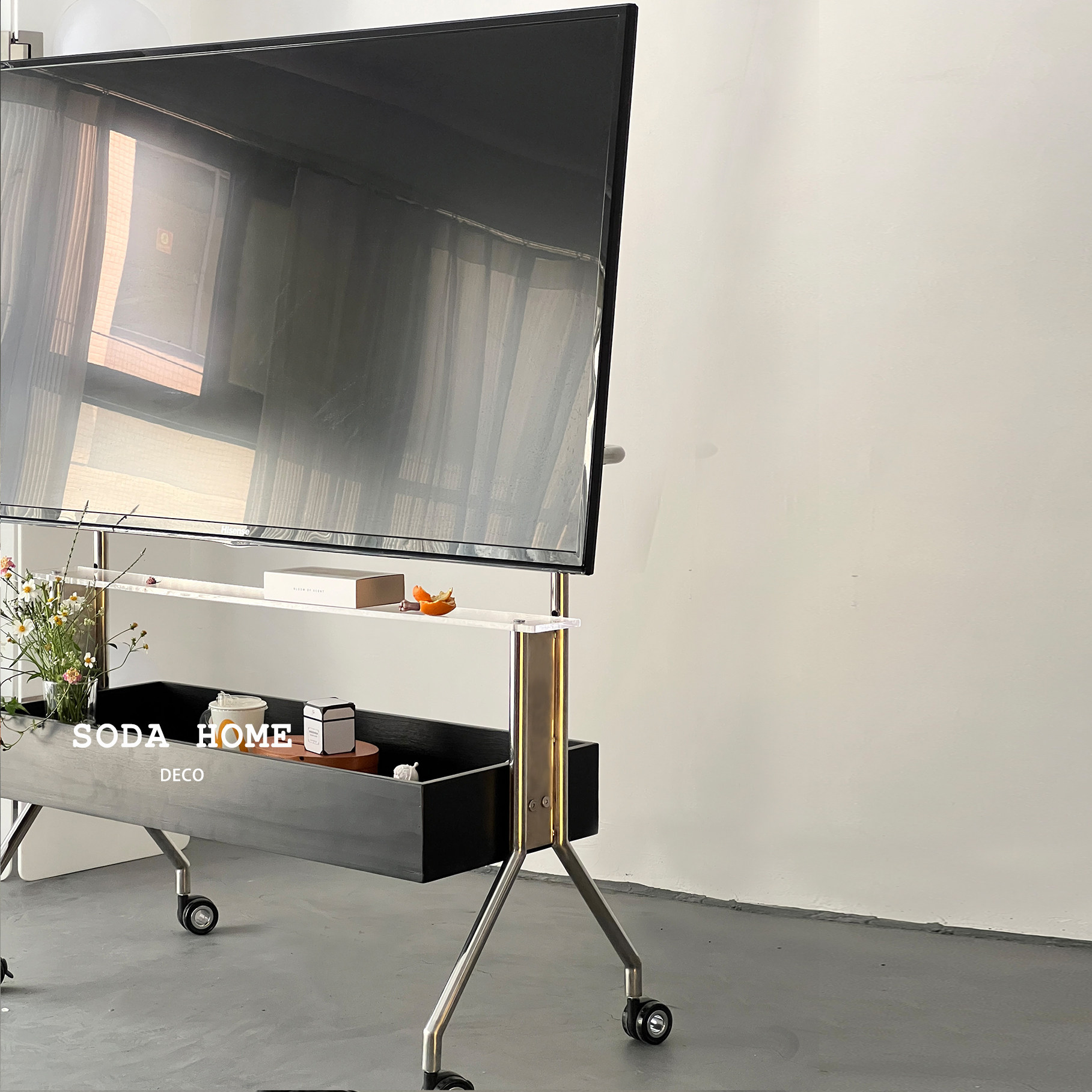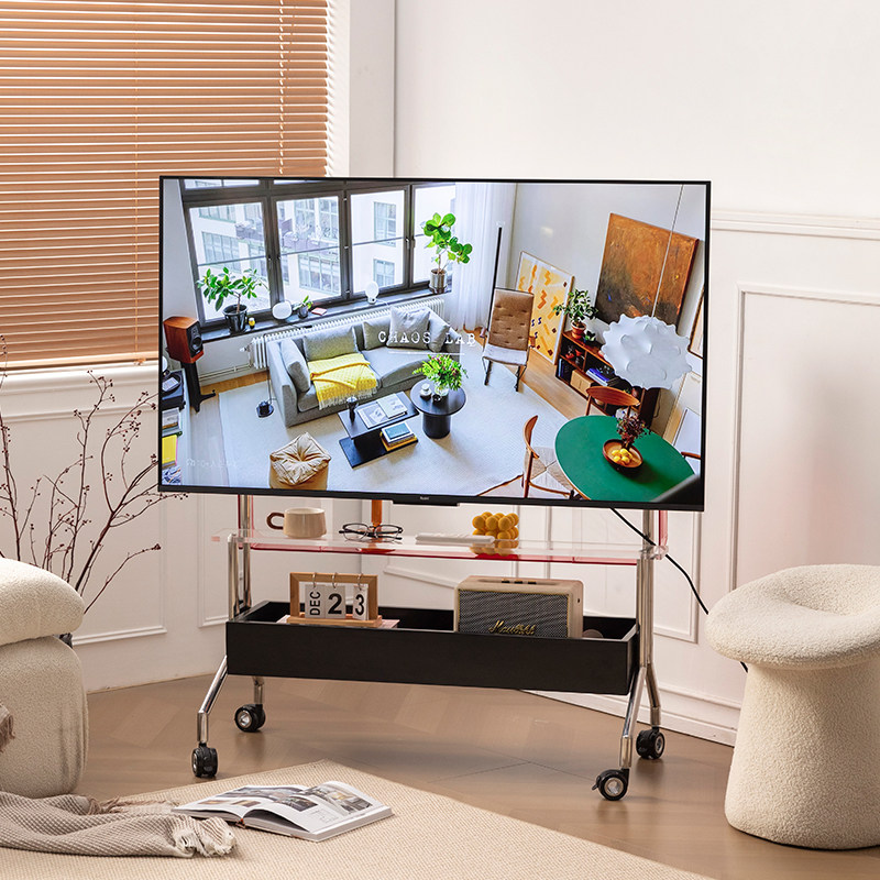 实木电视落地支架可移动不锈钢立式带轮推车会议客厅卧室钢置物架
