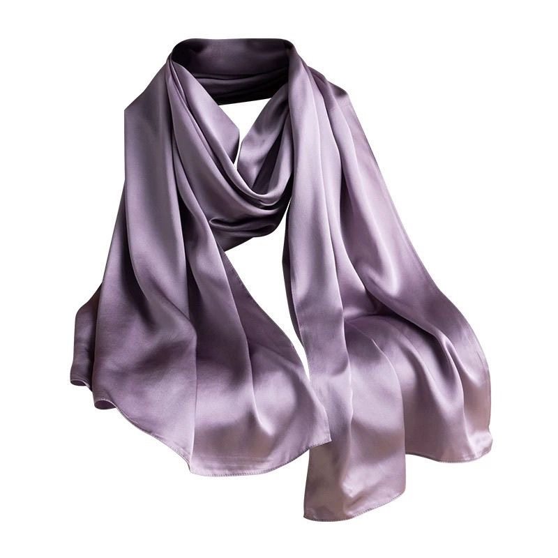 高档紫色真丝丝巾女旗袍外搭洋气桑蚕丝2025 年春秋冬季披肩围巾