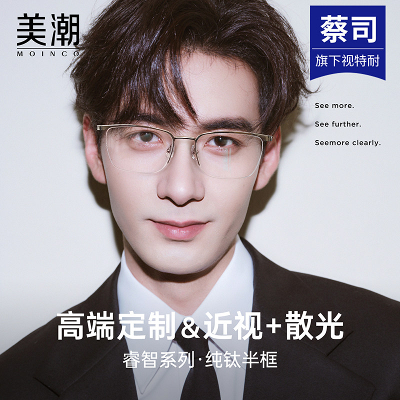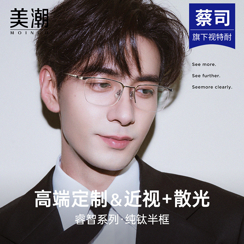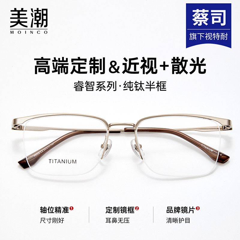 超轻纯钛半框眼镜男款近视可配度数加散光定制防蓝光专业网上配镜