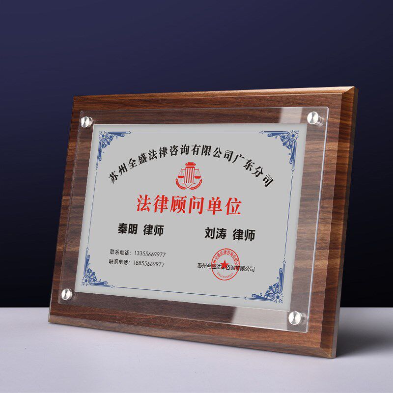 常年法律顾问单位牌匾奖牌定做单位律师咨询牌工作牌律师事务所牌
