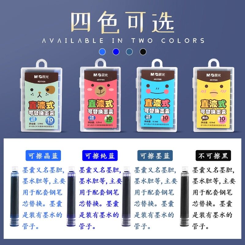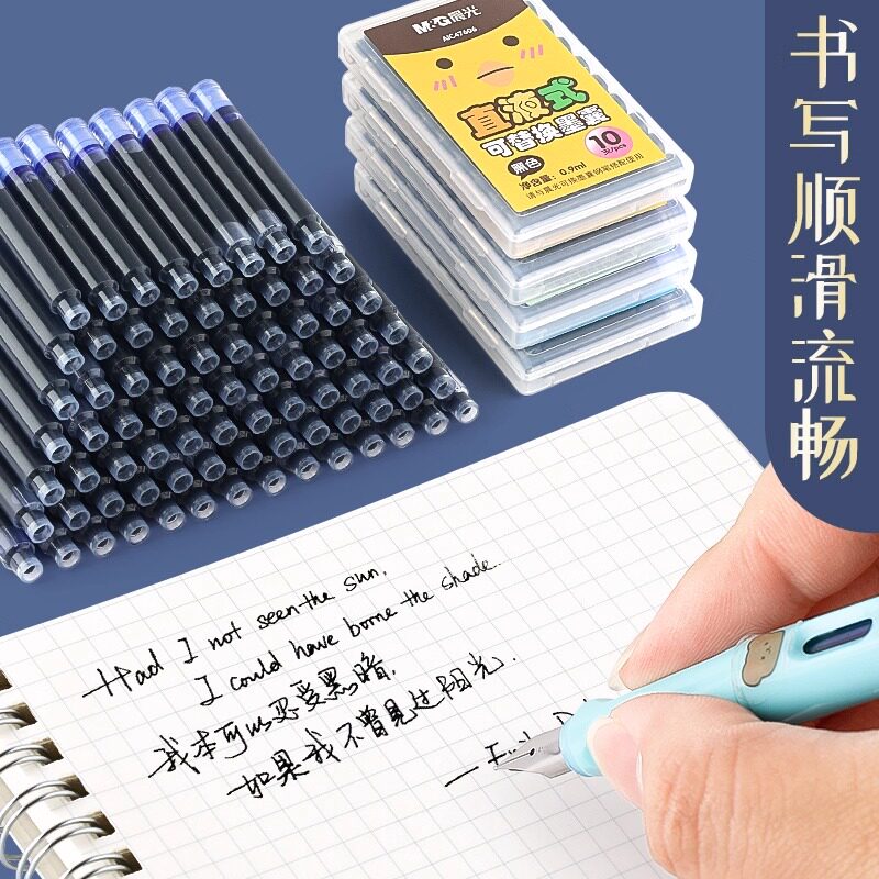 晨光可擦墨囊小学生专用钢笔墨囊可替换墨囊通用3.4mm替换盒装纯蓝晶蓝 蓝黑色墨水墨胆三年级专用直液式笔囊