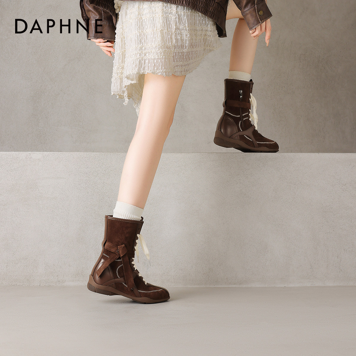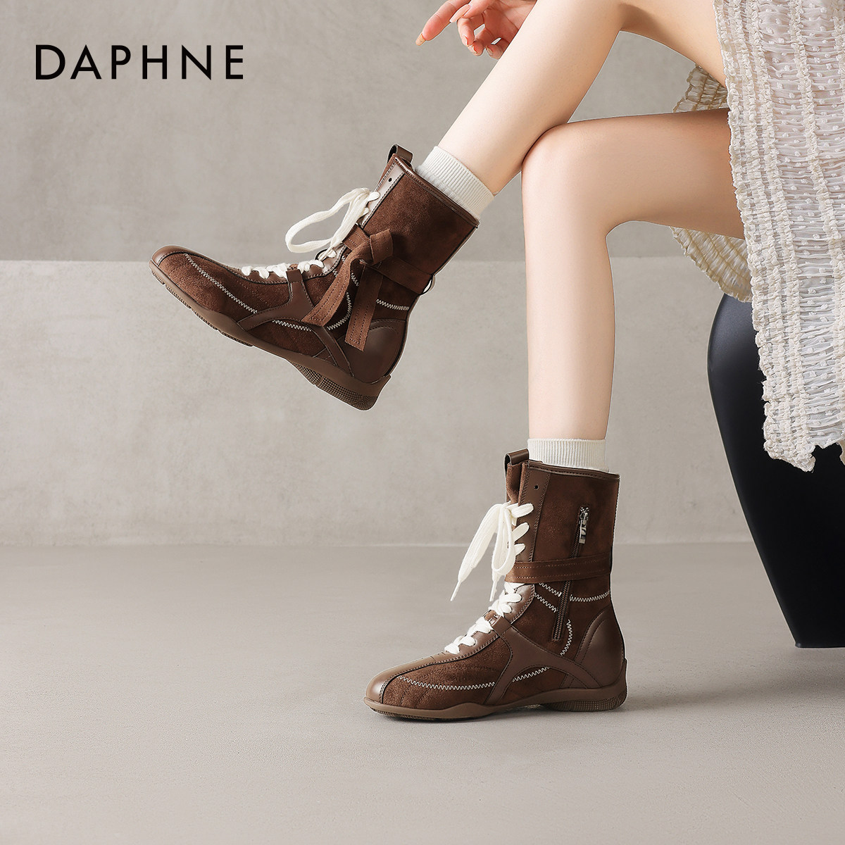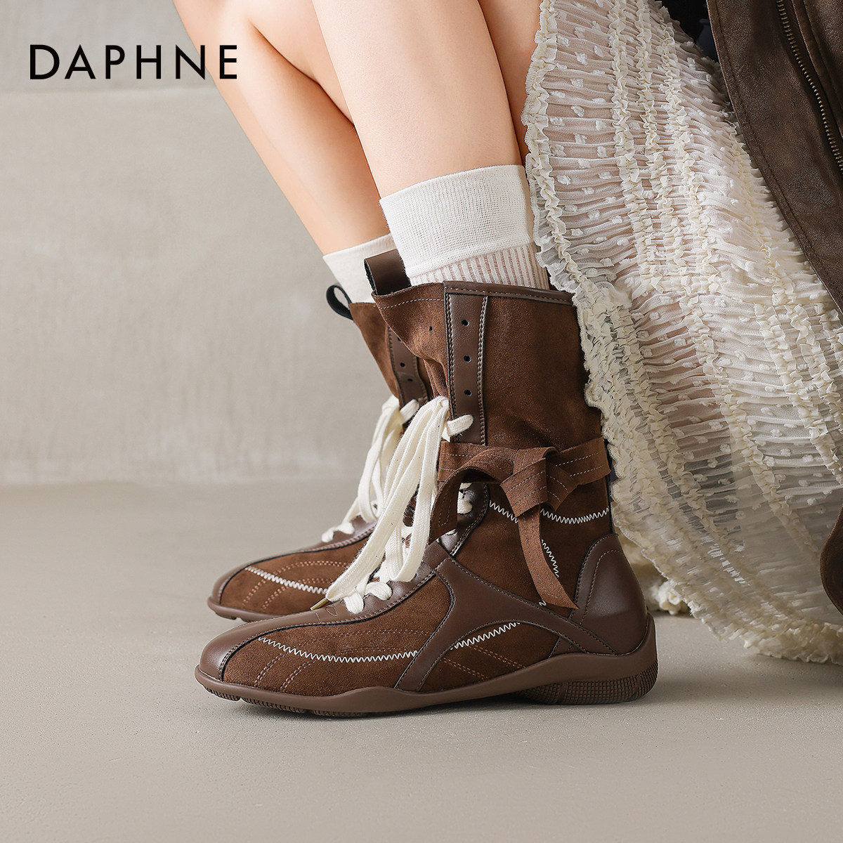 达芙妮美拉德拳击靴女2026新款短靴秋春季春款骑士靴平底马丁靴子