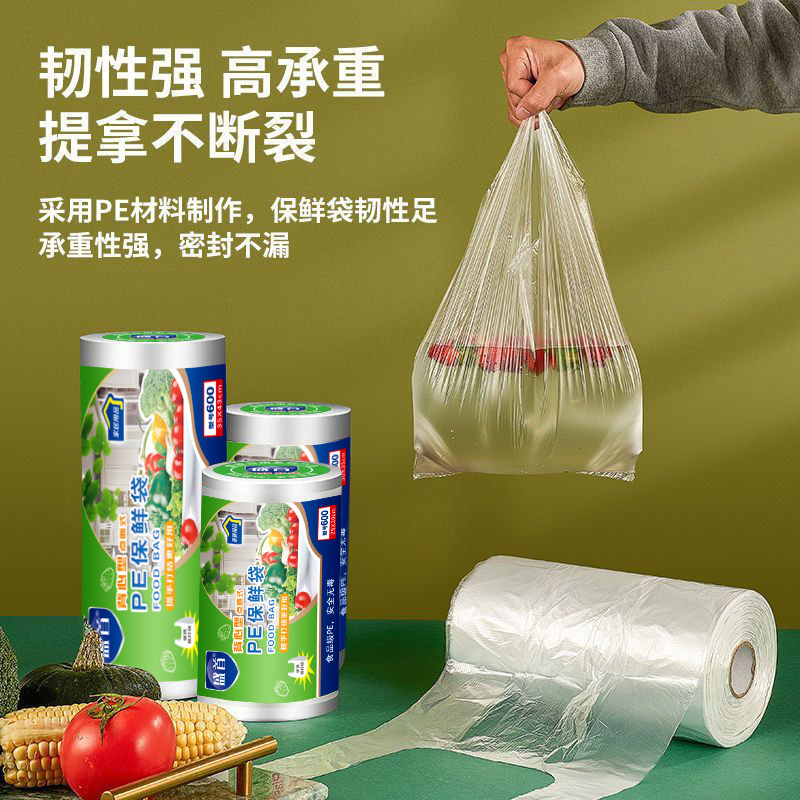 美丽雅保鲜袋食品级家用大号冷藏袋小号点断背心式一次性收纳加厚