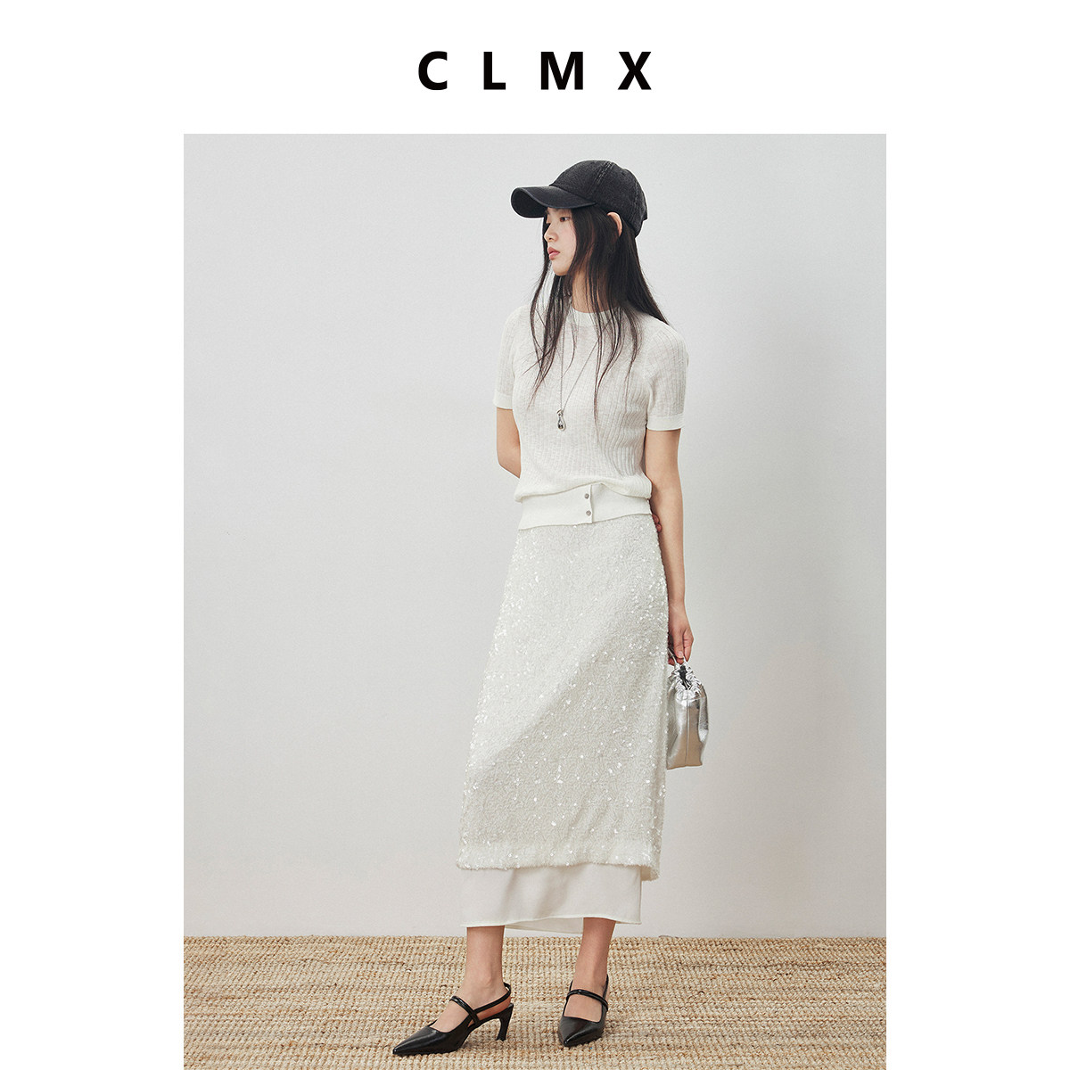 CLMX高质感奓华珠片刺绣弹力网纱 时髦通勤风璀璨珠片刺绣半身裙