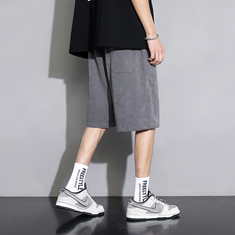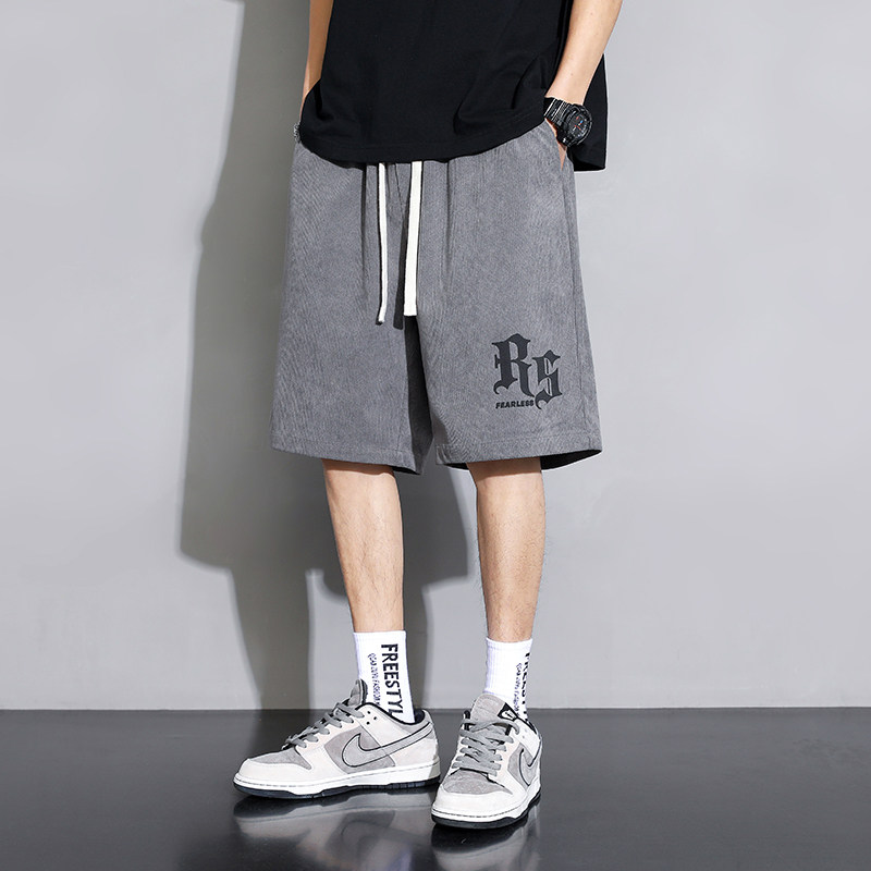 唐狮夏季休闲短裤男潮流薄款直筒灰色运动裤男宽松五分裤卫裤