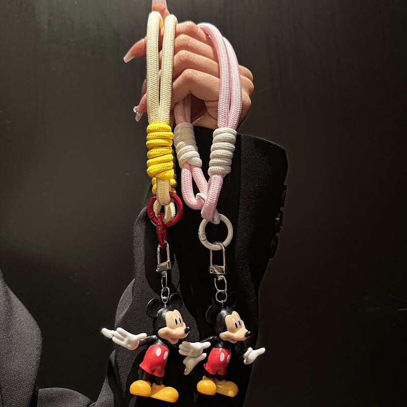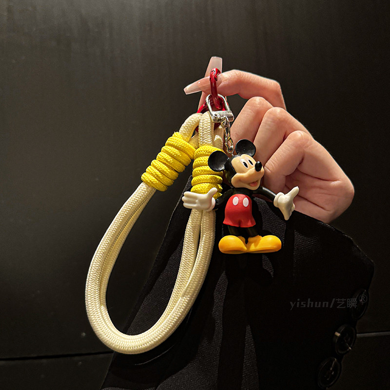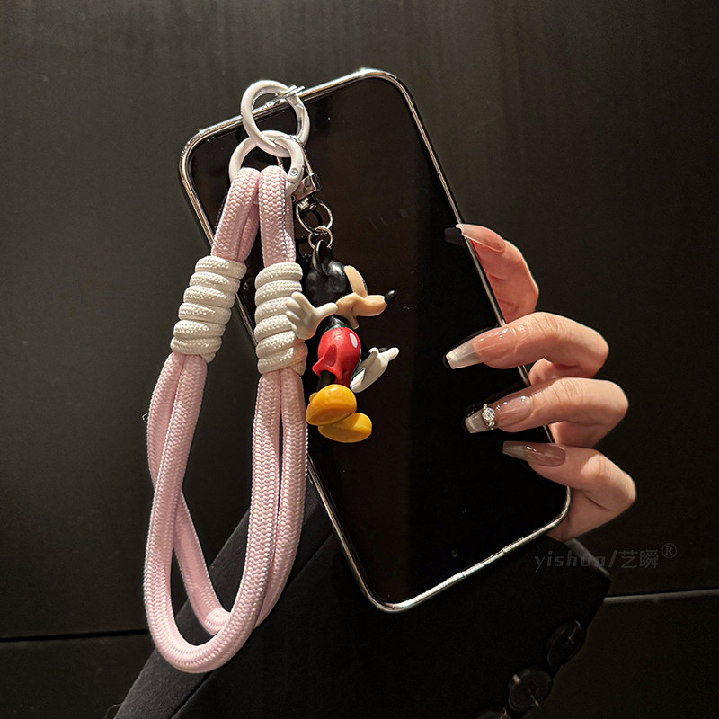编织手绳好奇歪头米奇手机钥匙扣包包卡通挂件适用挂绳手链便携手机链挂手腕气质手串珠挂坠手机挂链2024新款