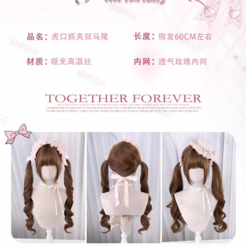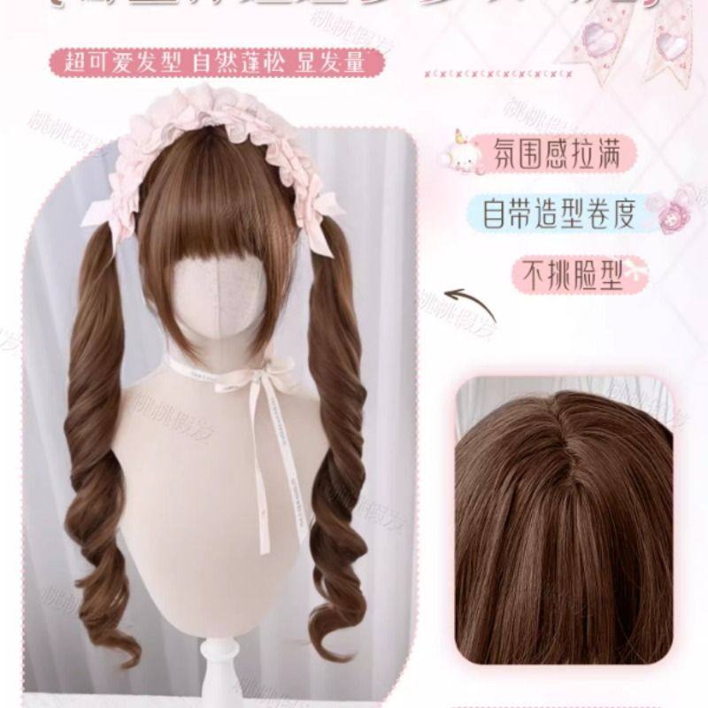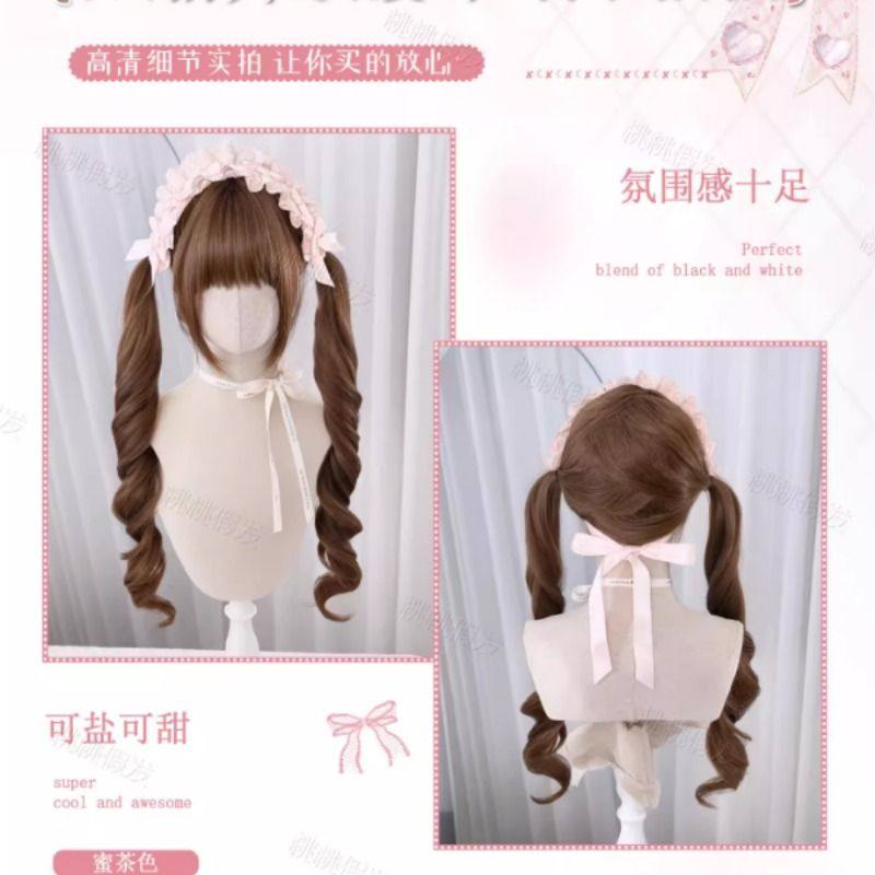 【古董娃娃】lolita假发双马尾蜜茶色长卷发齐刘海假发全头套式女