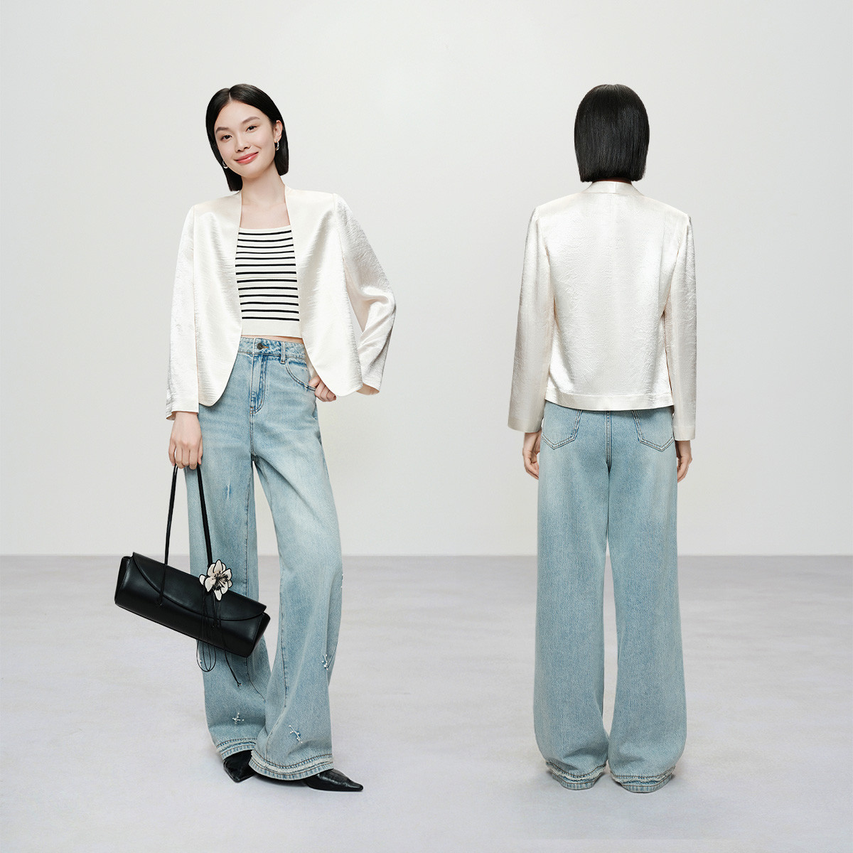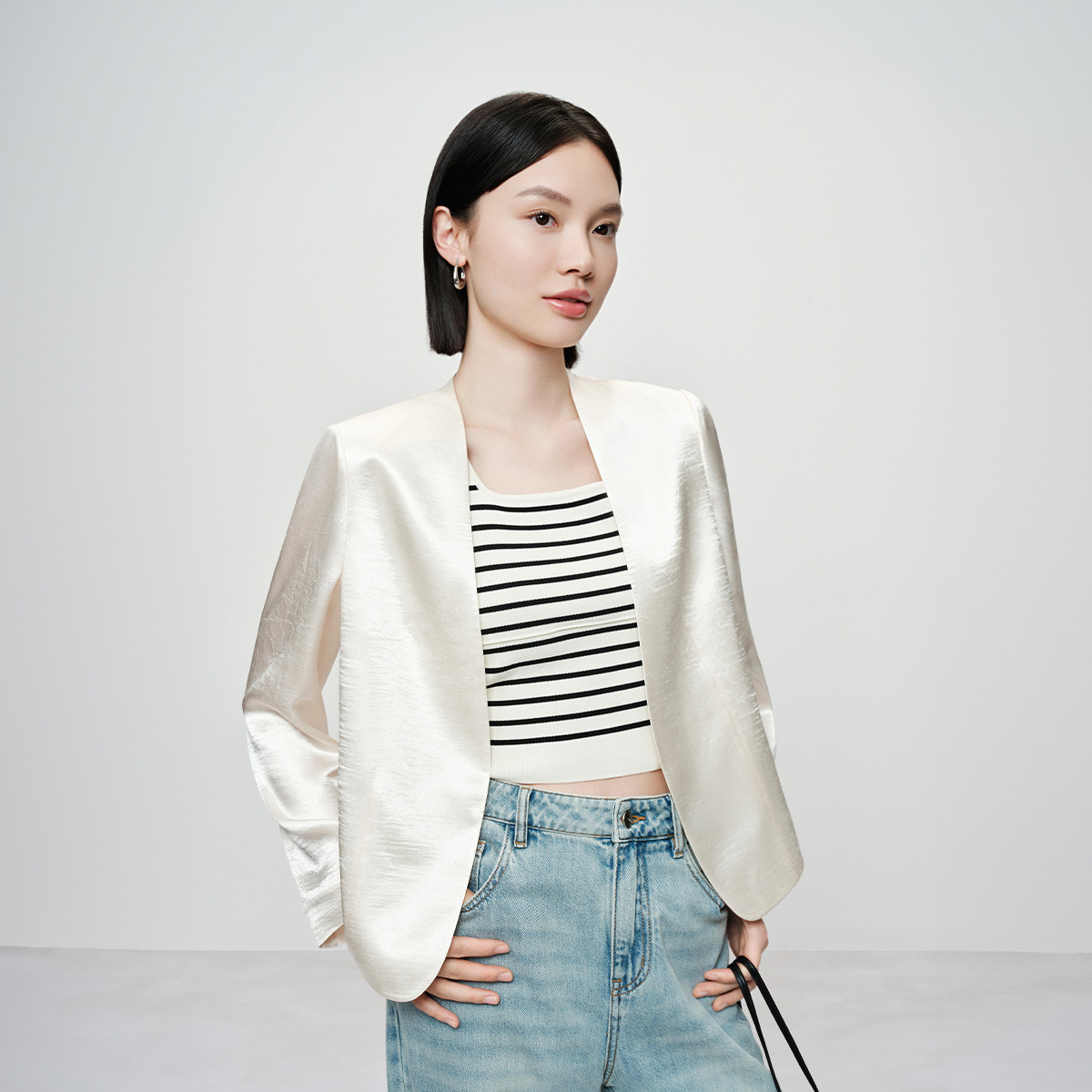 【伊士曼醋酸100】naivee纳薇26夏季新款通勤轻盈无领西装外套短