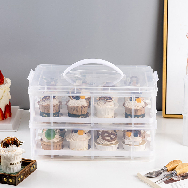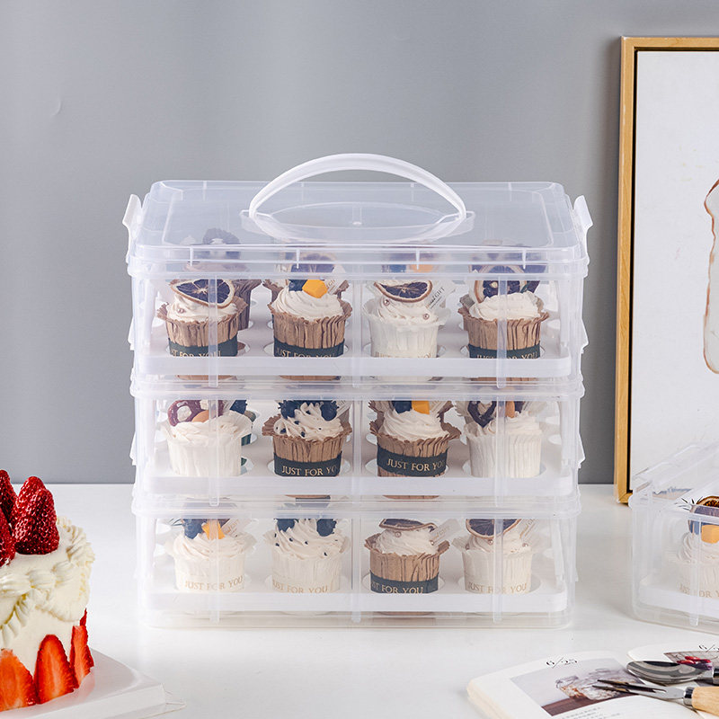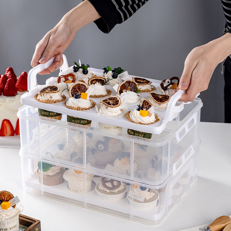 手提纸杯蛋糕打包盒可重复使用马芬移动甜品台创意透明收纳箱运输