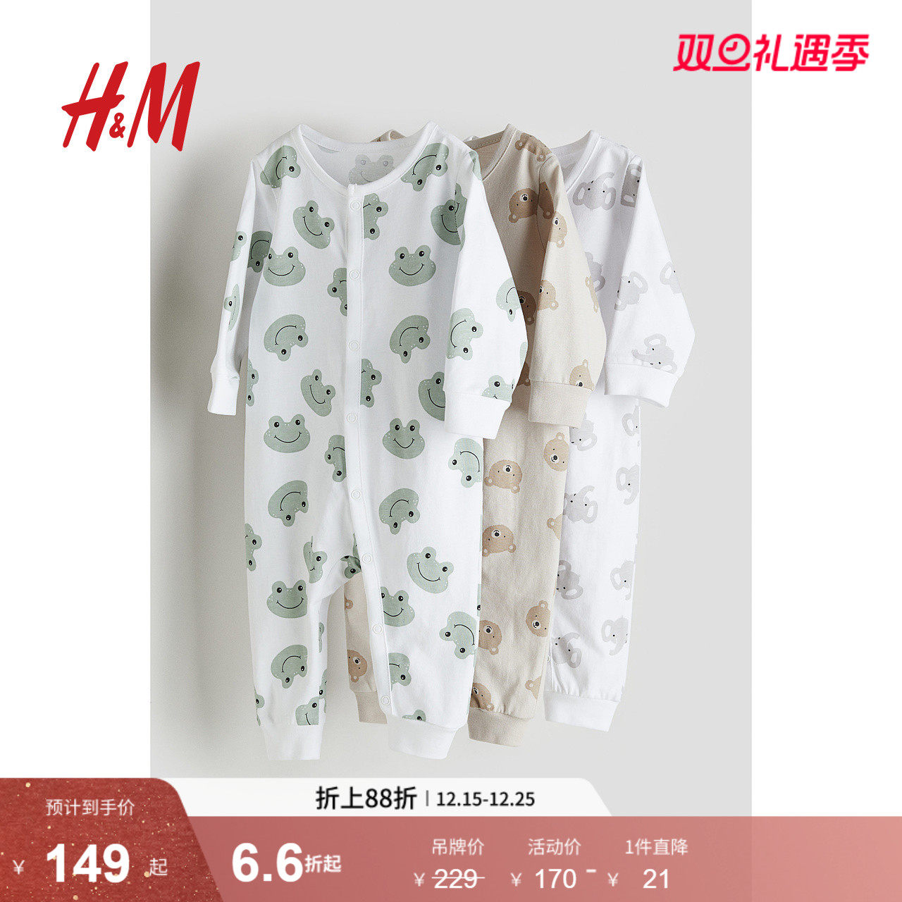 HM童装男婴女婴家居服3件装冬季可爱印花连体睡衣1125924
