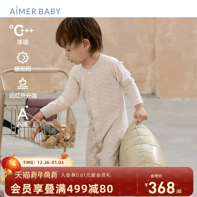 爱慕婴儿保暖内衣A类婴幼远红外升温厚暖连体爬服宝宝睡衣秋冬款