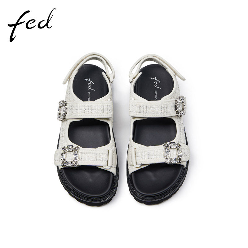 fed时尚沙滩凉鞋夏季新款女鞋水钻休闲增高运动凉鞋R0409-YAB553