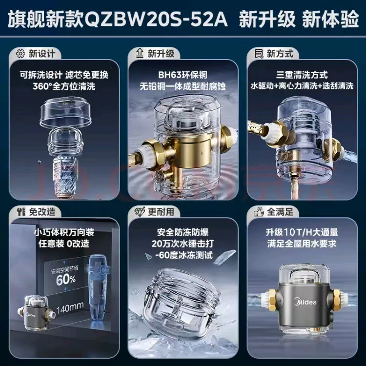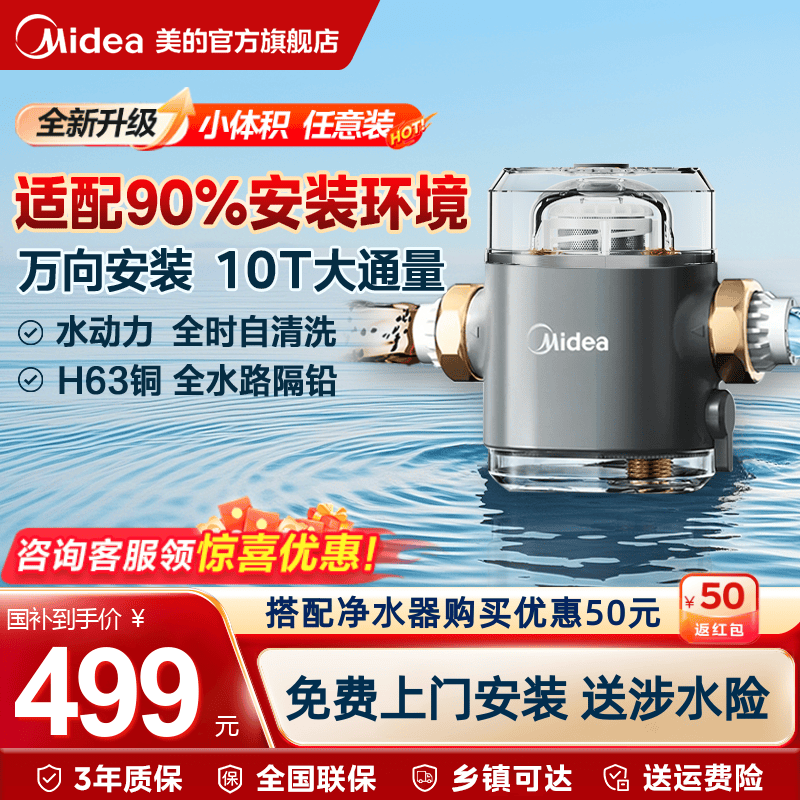 美的新款mini前置过滤器10T家用自动刮洗净水器饮水机全屋自来水