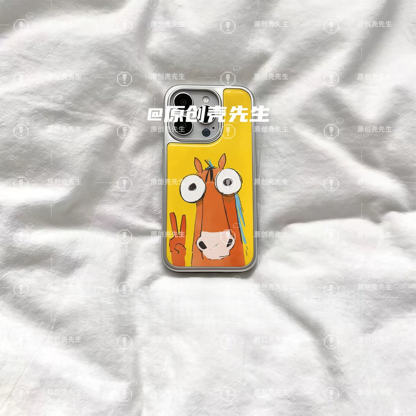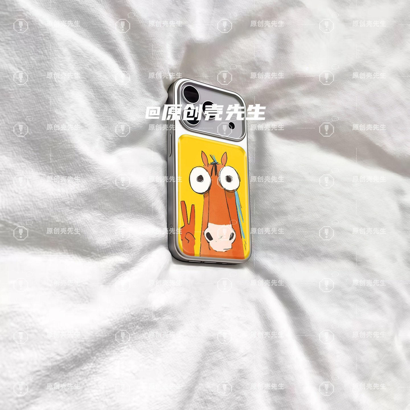 ins复古可爱比耶小马电镀银磁吸适用苹果iPhone17promax手机壳1615pro小米1415Pro华为mate60p70三星S23防摔