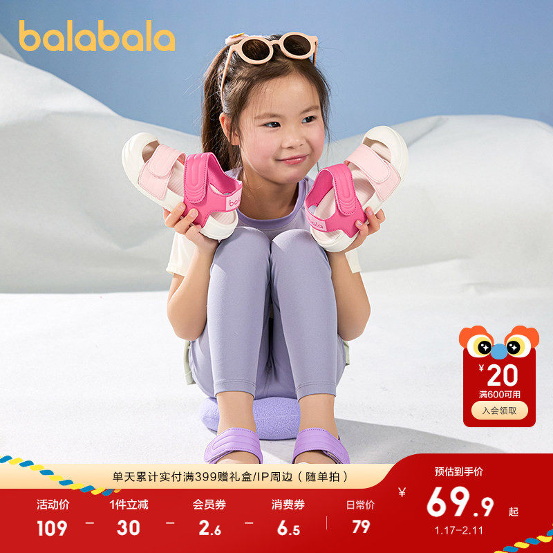 巴拉巴拉童鞋儿童凉鞋女童包头沙滩鞋防滑2025夏季新款鞋子魔术贴