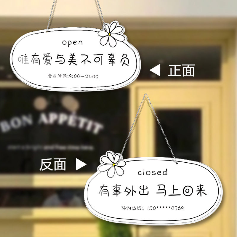 出入请随手关门亚克力双面美容院美甲美睫店挂牌联系电话店铺门口马上回来空调开放正在营业中温馨提示牌定制