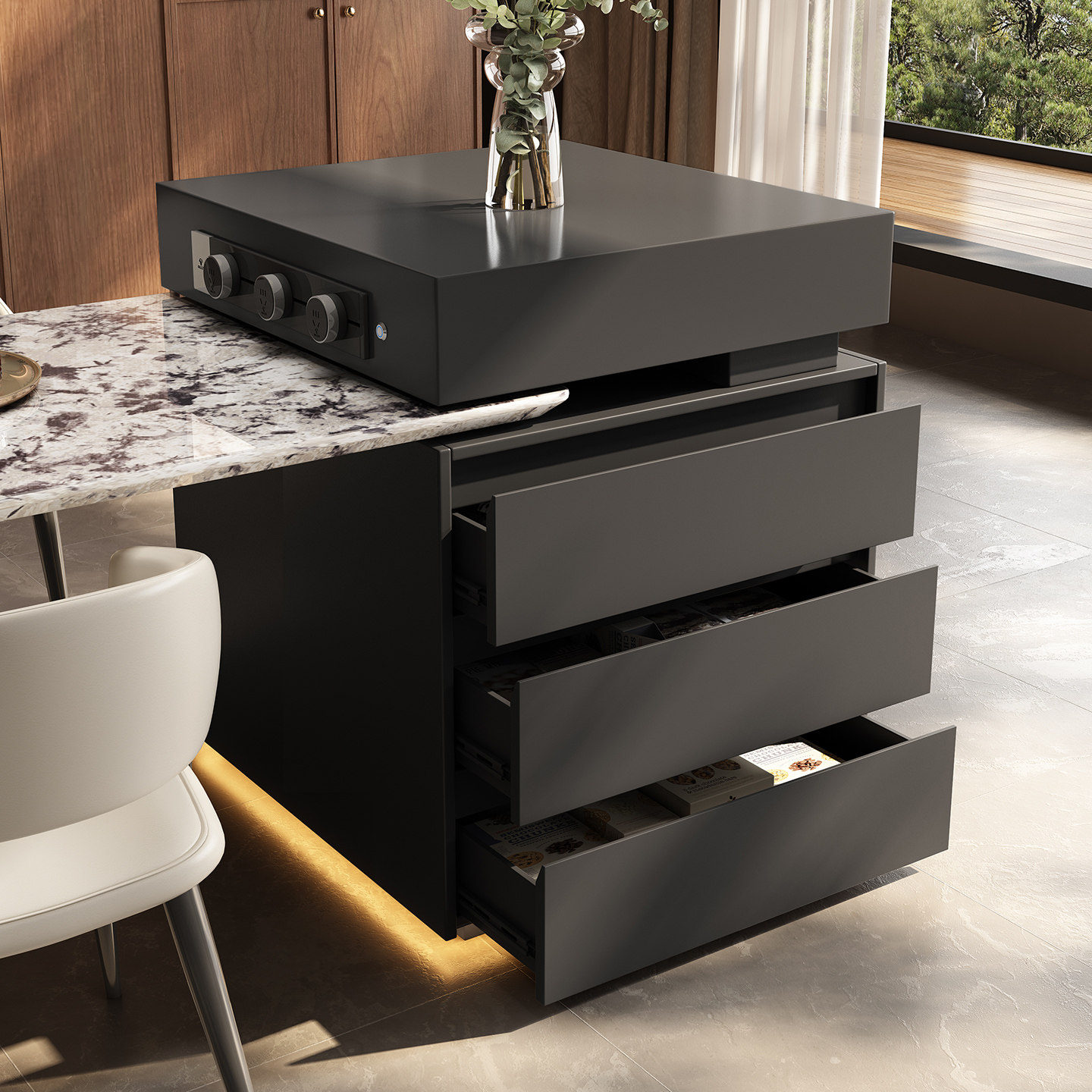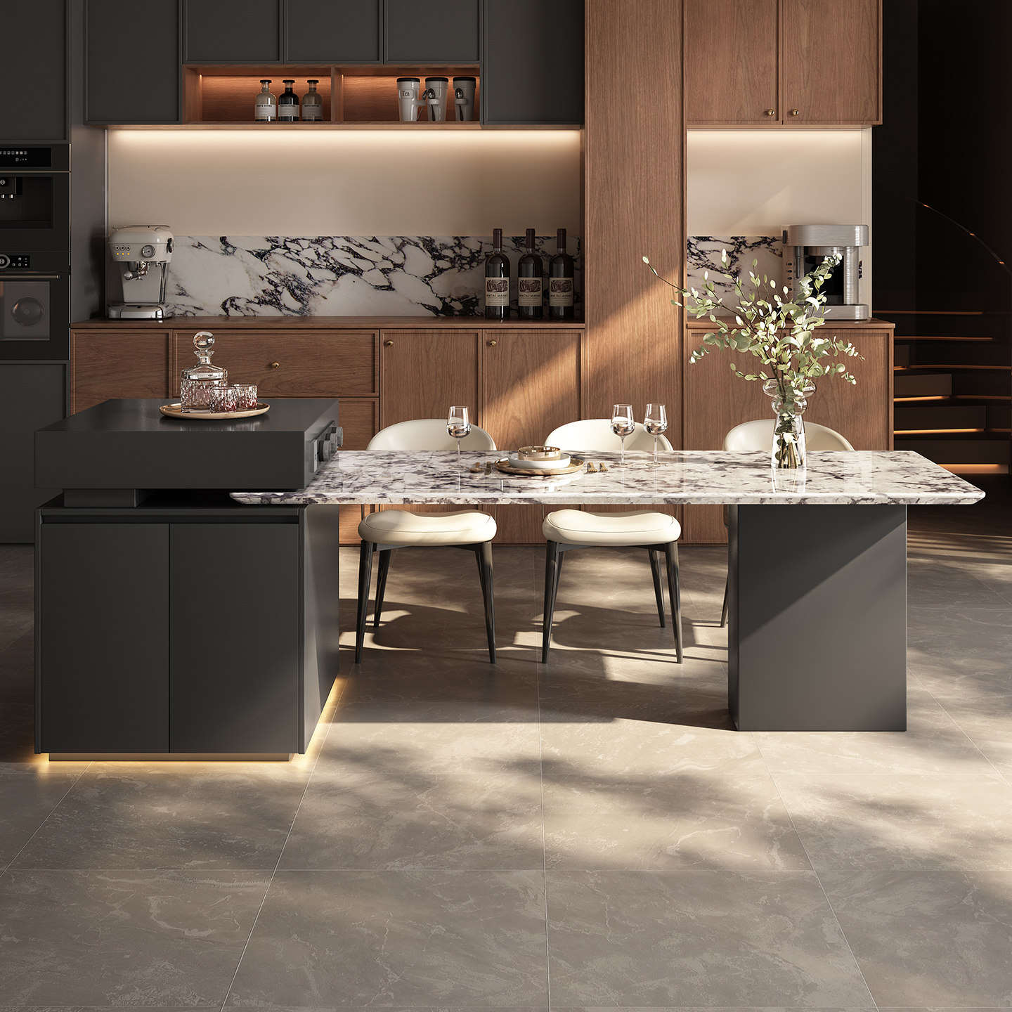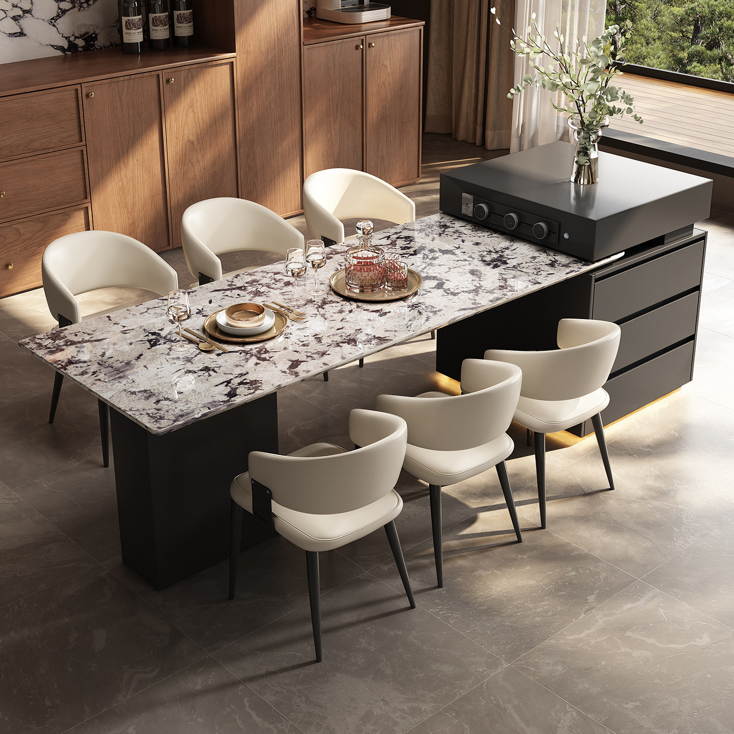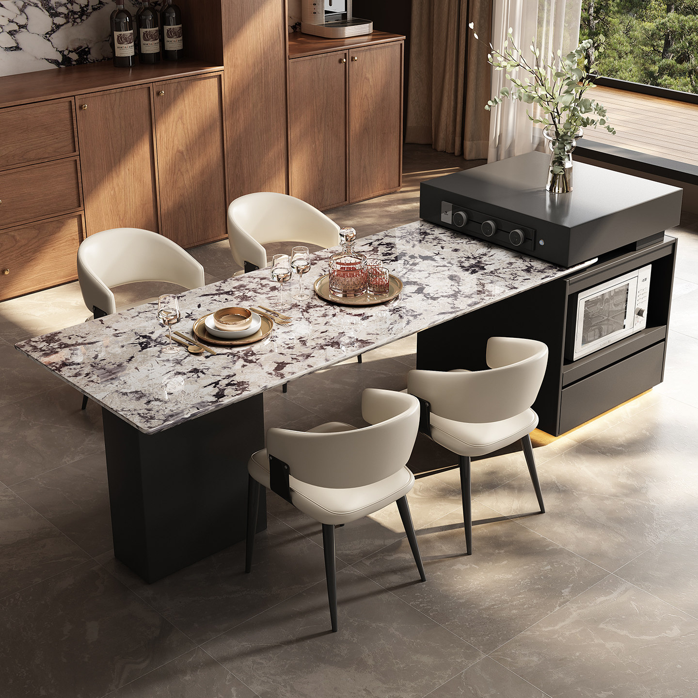天然奢石意式岛台餐桌雪山飞狐别墅家用客厅高级感带水槽中导台