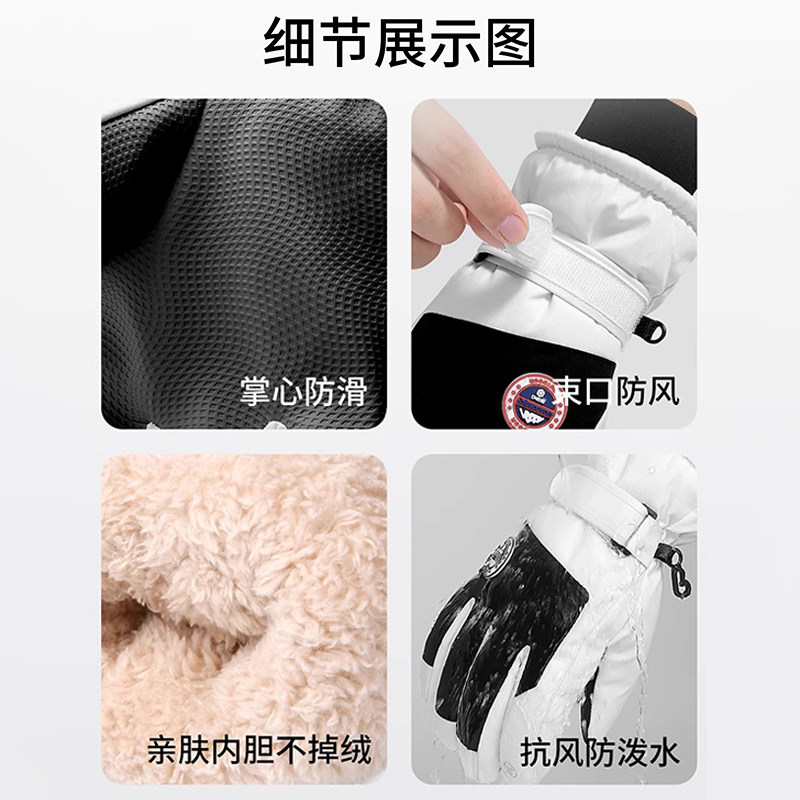 滑雪骑行手套冬季可触屏加绒加厚户外保暖防寒防风防水摩托车手套