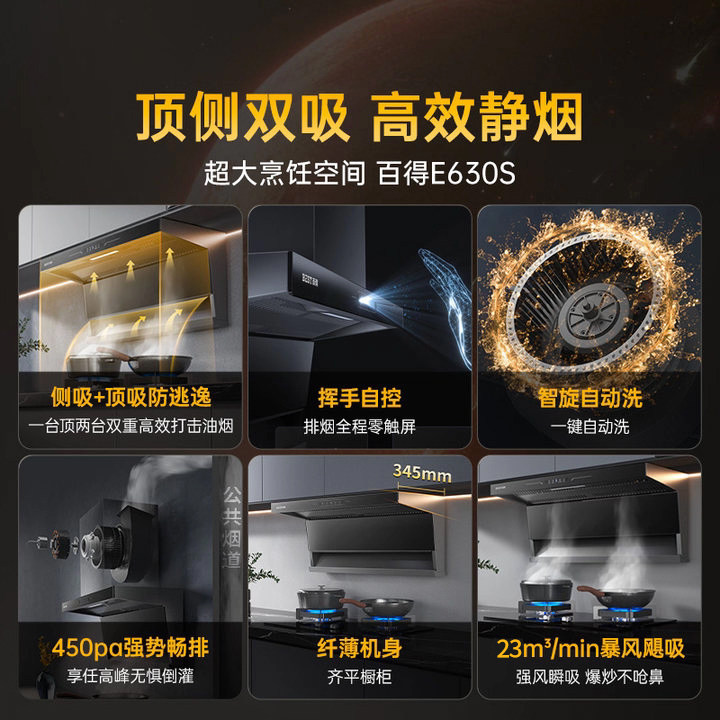 华帝百得抽油烟机燃气灶套装旗舰店家用厨房吸烟机灶具套餐E630S