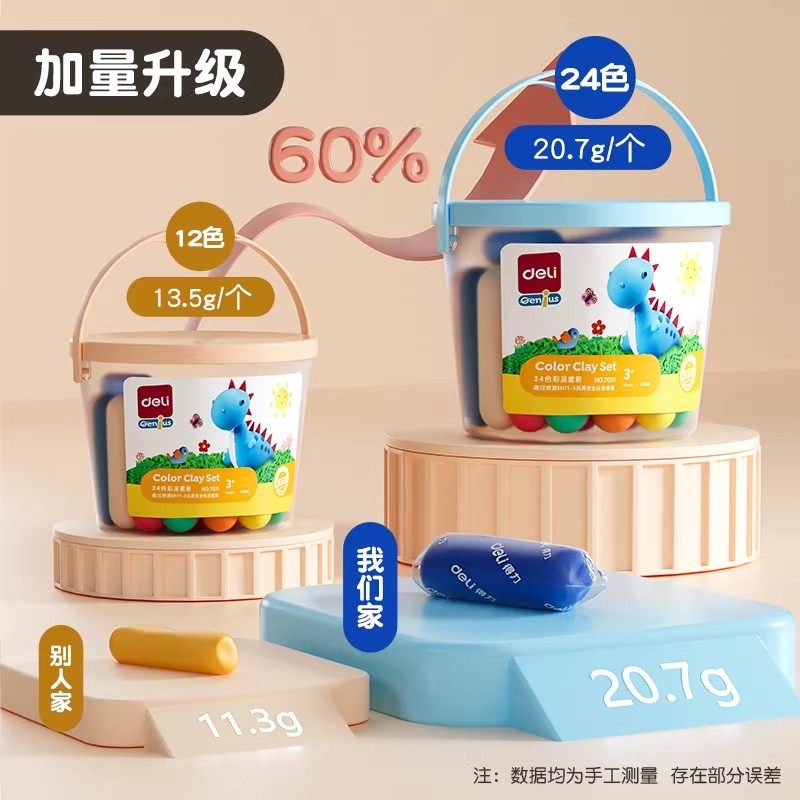 得力彩泥24色橡皮泥儿童食品级抗菌幼儿园专用小学生diy手工12色桶装玩具安全标准女孩轻型模具无毒