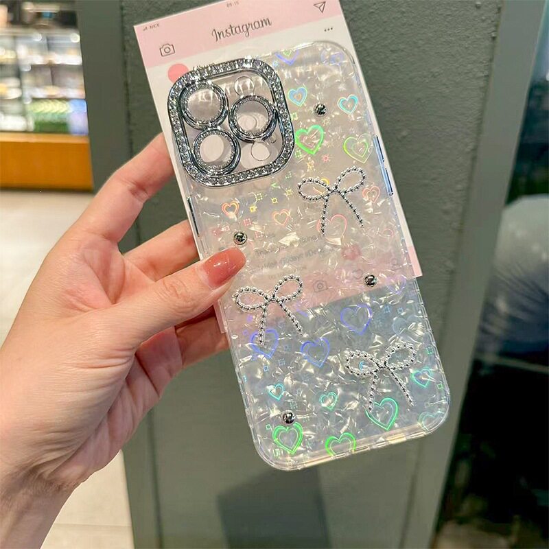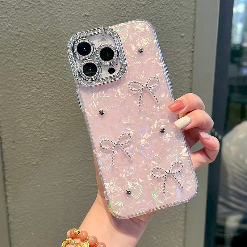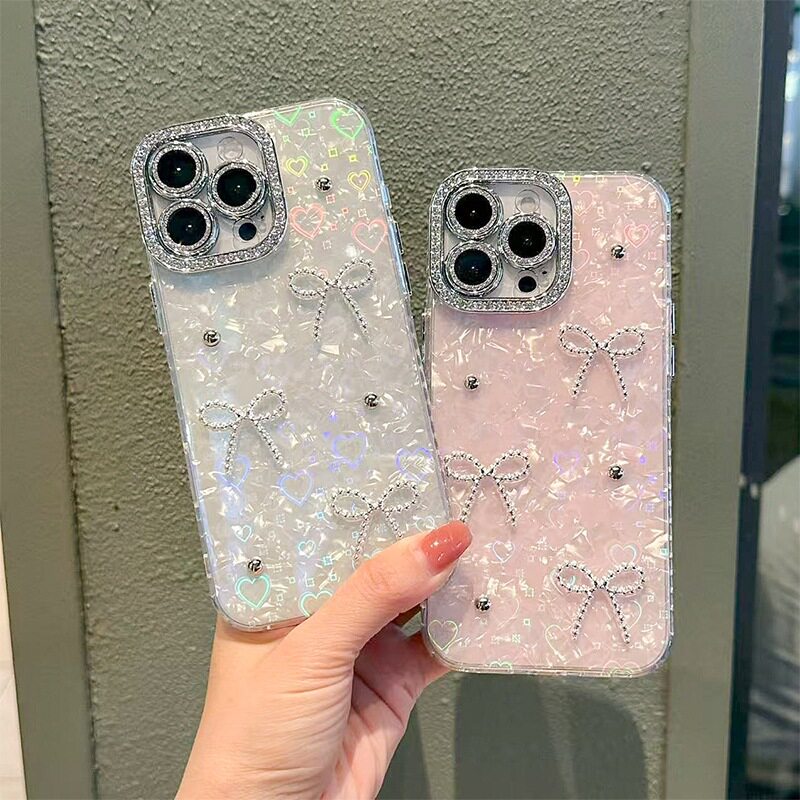 适用iPhone17promax水钻KT高级感手机壳苹果16plus领结15pro奢华时尚14女款蝴蝶结13保护套奢华硬壳个性轻奢