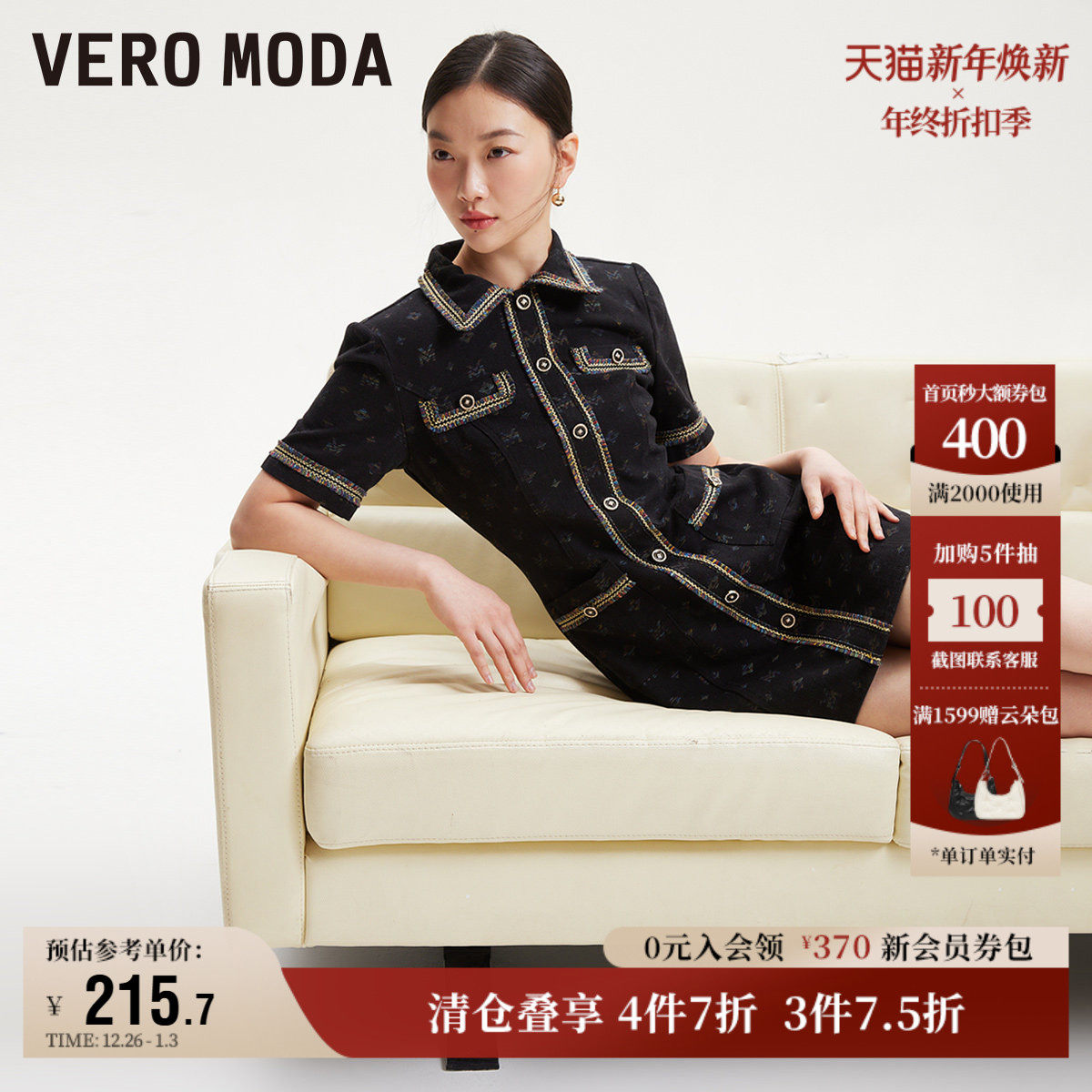 Vero Moda奥莱连衣裙秋季新款牛仔印花气质小香风短袖裙子流行
