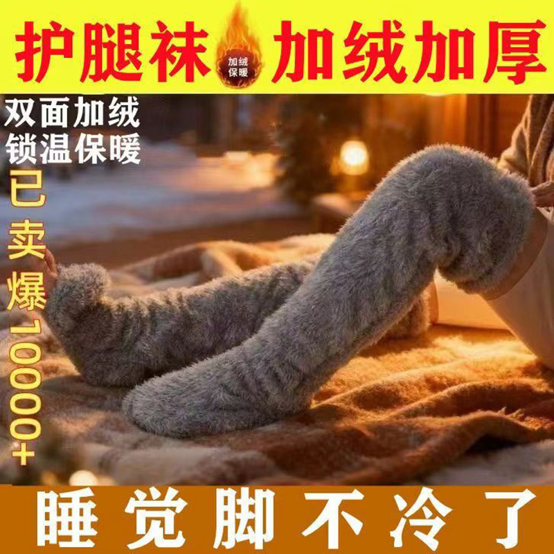 护腿长筒袜套女秋冬季过膝加长袜子护膝保暖老寒腿加厚纯色高筒袜