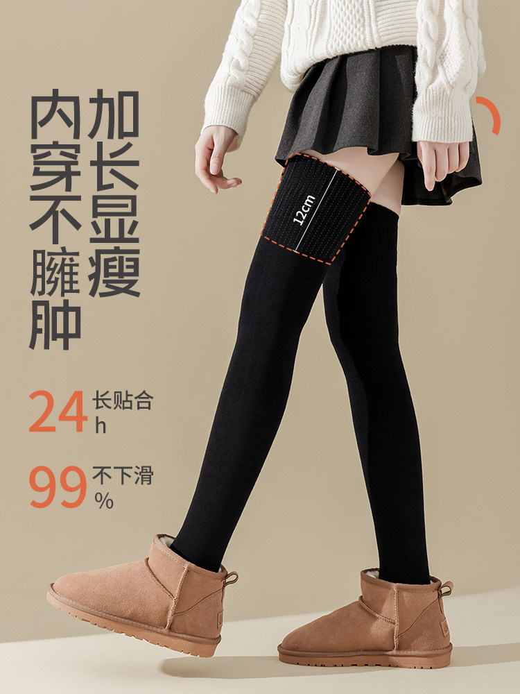 过膝袜子女高筒袜秋冬季加绒加厚保暖大腿纯色冬天半截长筒袜膝盖