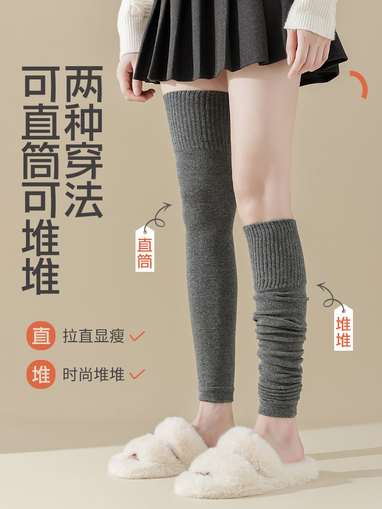 暖冬拍档~羊绒袜套保暖过膝长筒袜针织堆堆袜护小腿脚腕护膝纯色