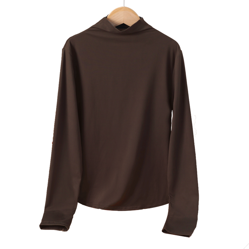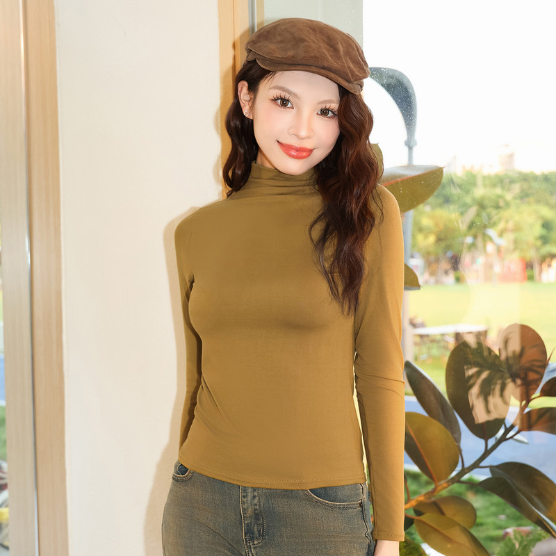 widelia十三行老板娘冬正肩小立领半高领打底衫弹力长袖T恤女9585