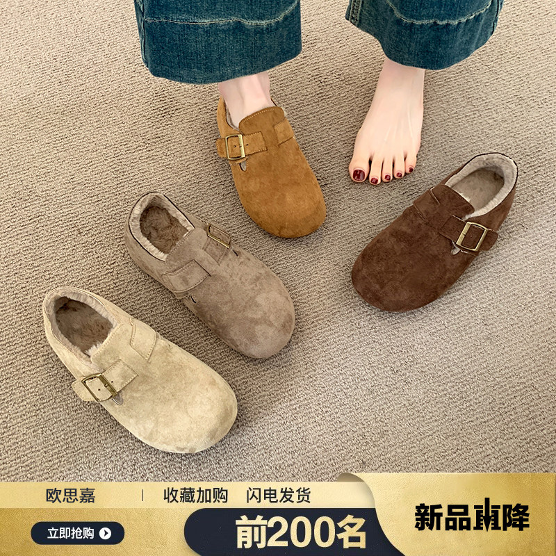 勃肯鞋女秋冬2025新款爆款一脚蹬豆豆鞋冬季女鞋加绒全包博肯鞋子