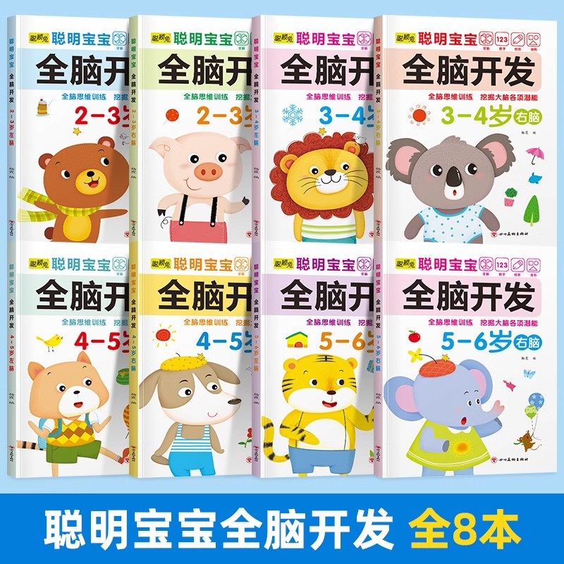 全套8册儿童左右脑智力潜能开发1-2-3-4-5-6岁幼儿益智启蒙书籍专注力训练书三两岁宝宝书本早教绘本幼儿园中班大班图书幼小衔接