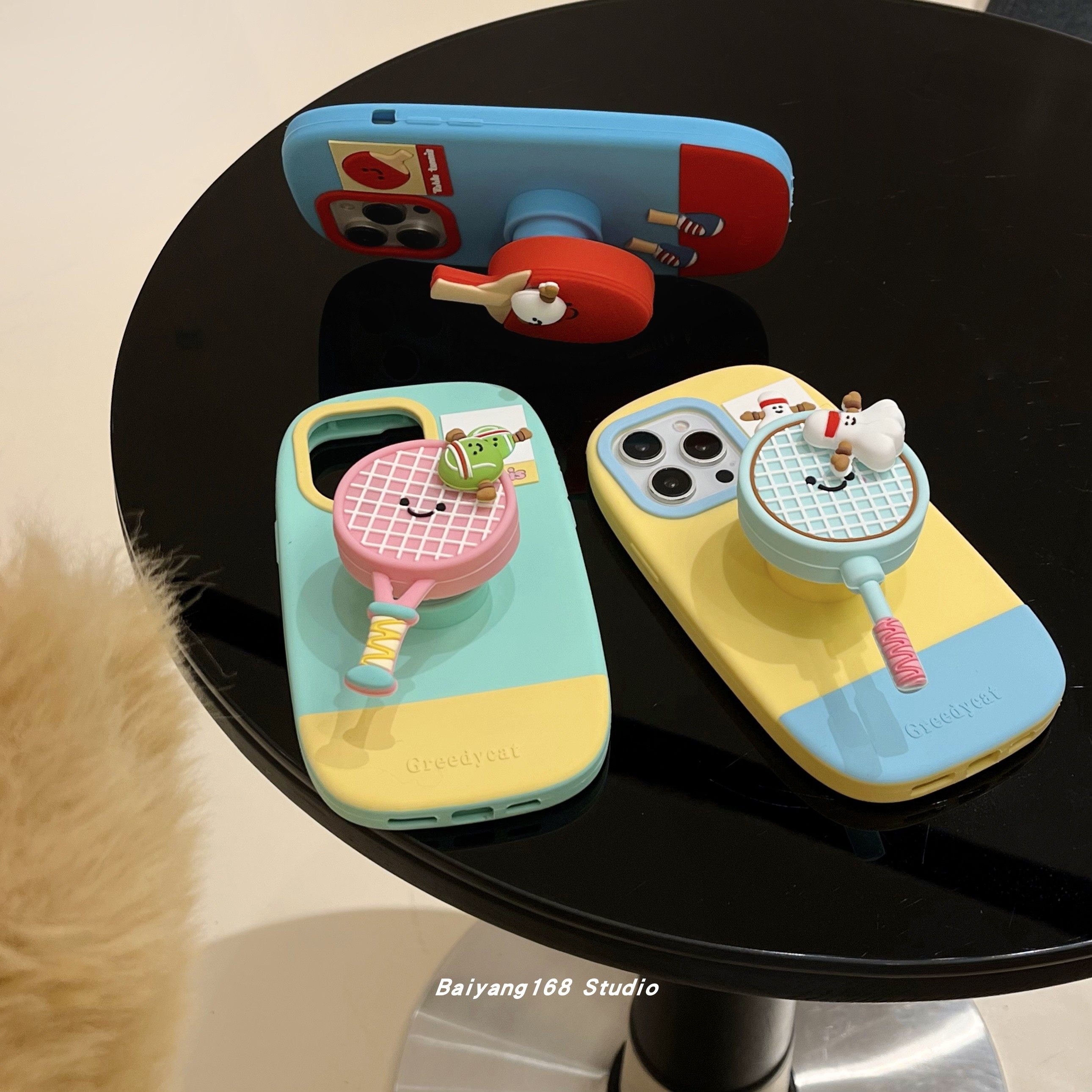 可爱立体羽毛球乒乓球拍支架适用iPhone16promax手机壳苹果15新款硅胶13创意14韩风16卡通14pro女15pro保护套