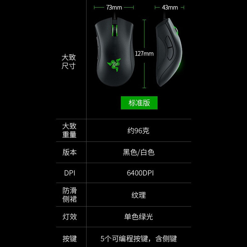 雷蛇Razer炼狱蝰蛇标准版6400DPI白色有线吃鸡电竞笔记本游戏鼠标