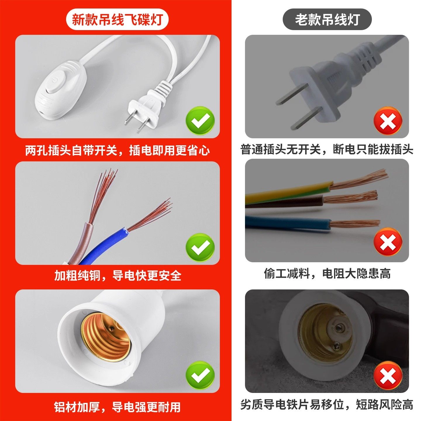 全光谱家用插电式照明带线开关悬挂E27螺口led飞碟灯泡暖光护眼