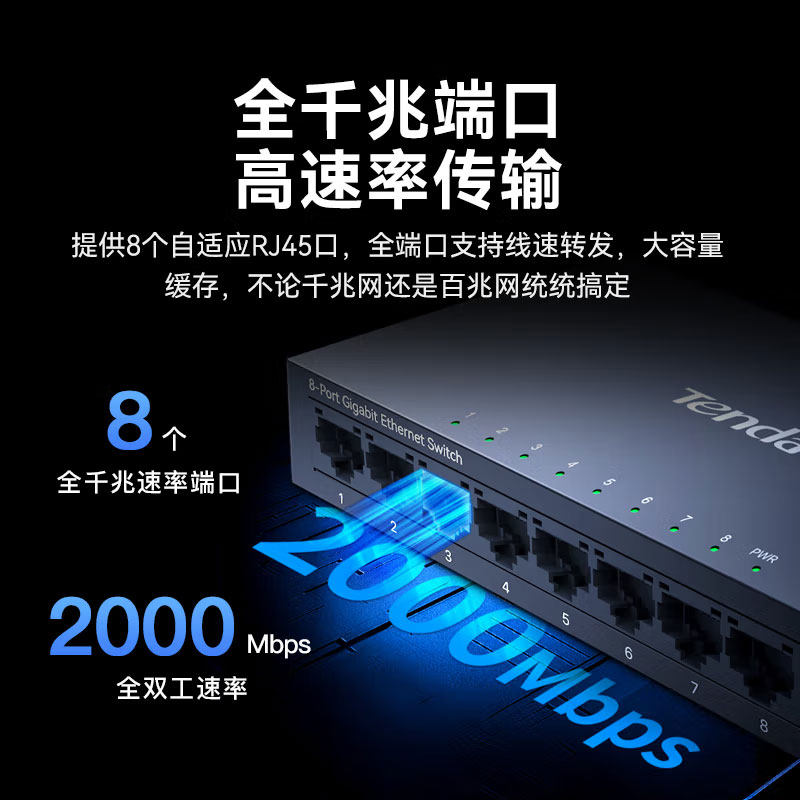 Tenda腾达8口千兆交换机 网络扩展器网线分线器一分八 企业家用监控交换器转换器分流器