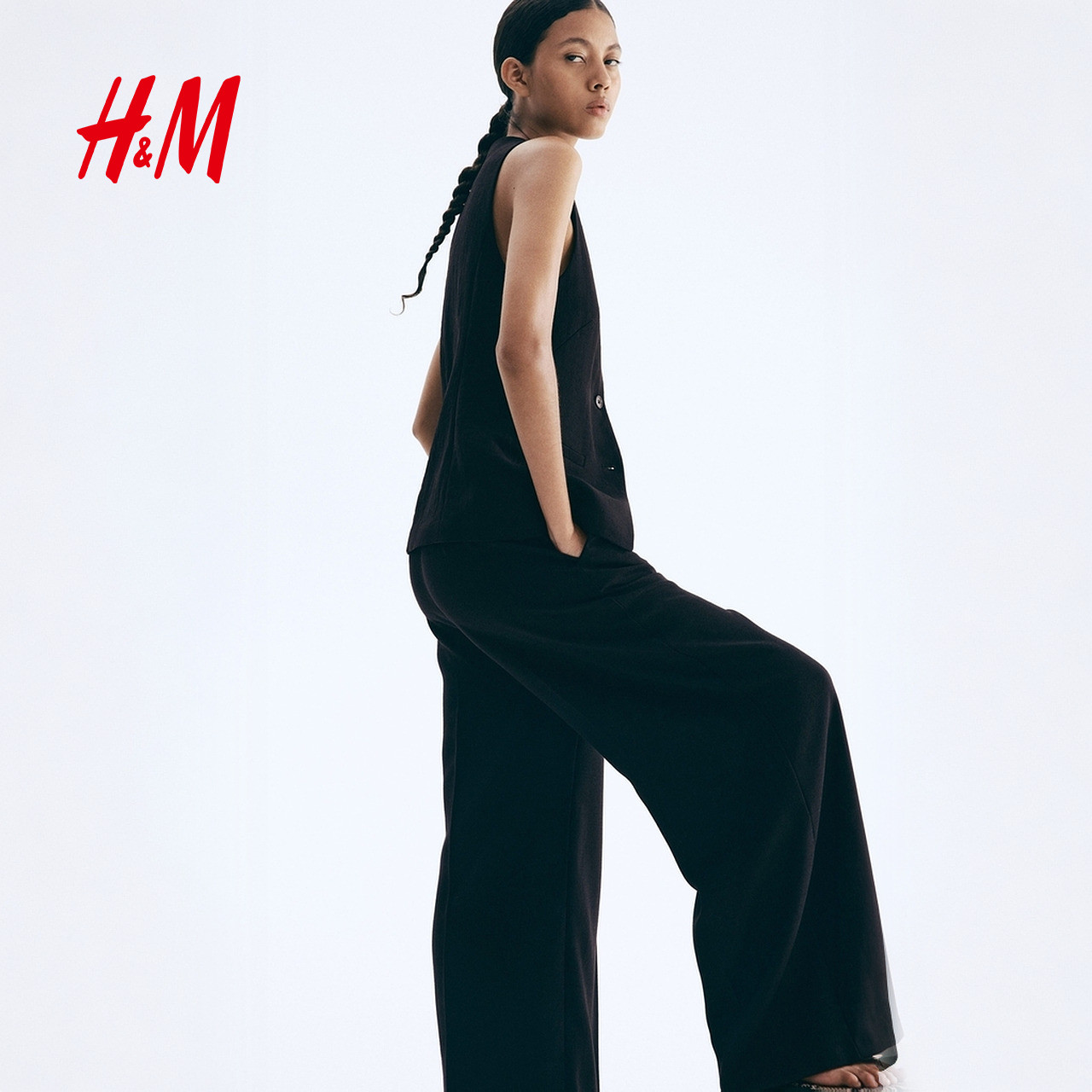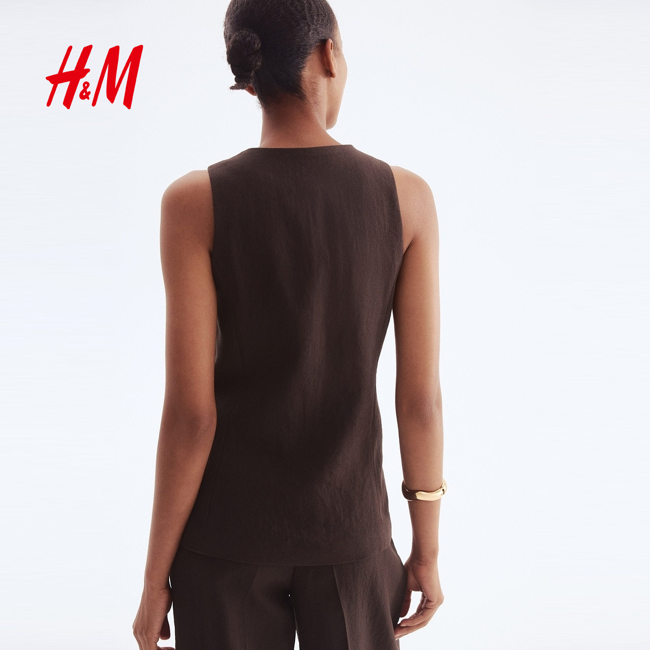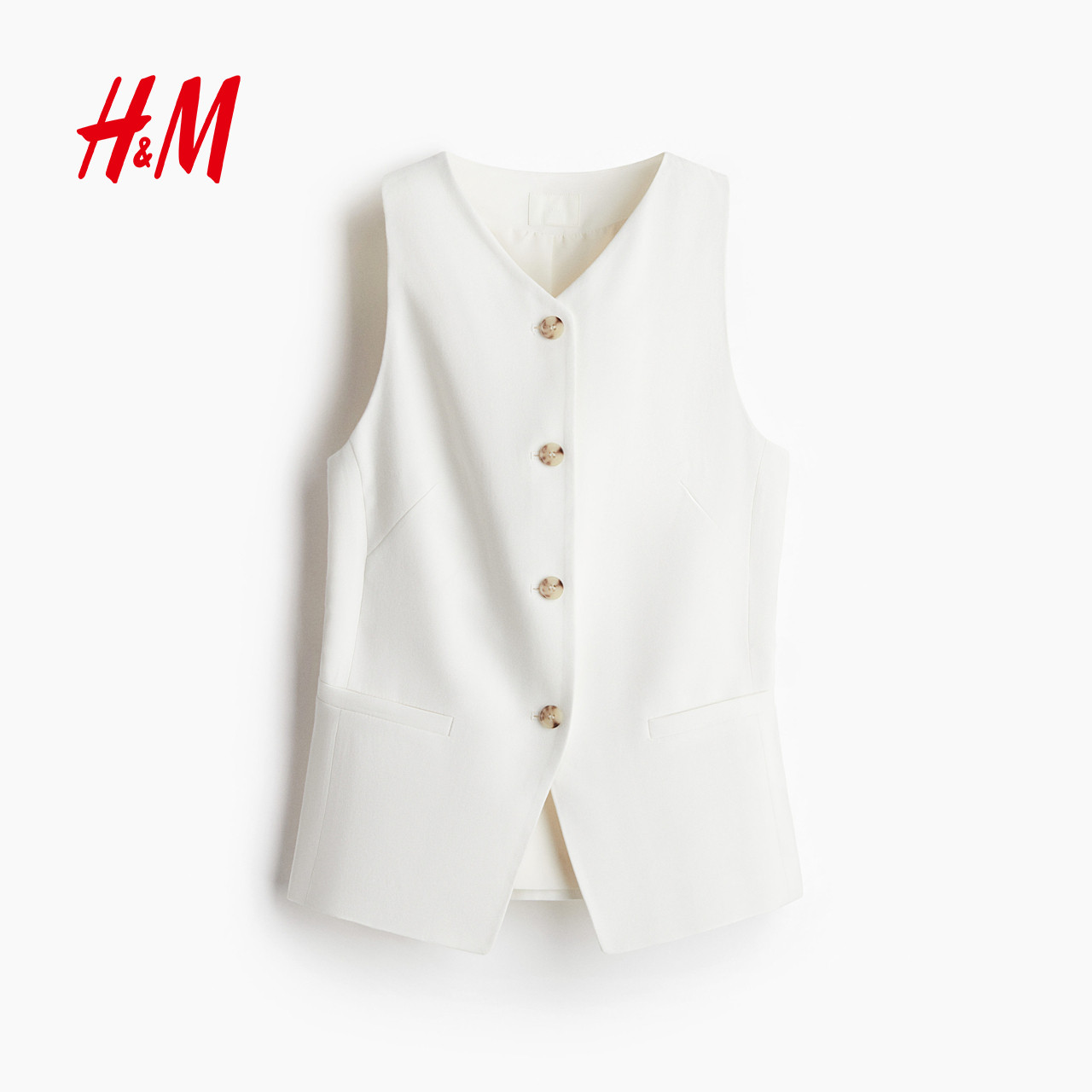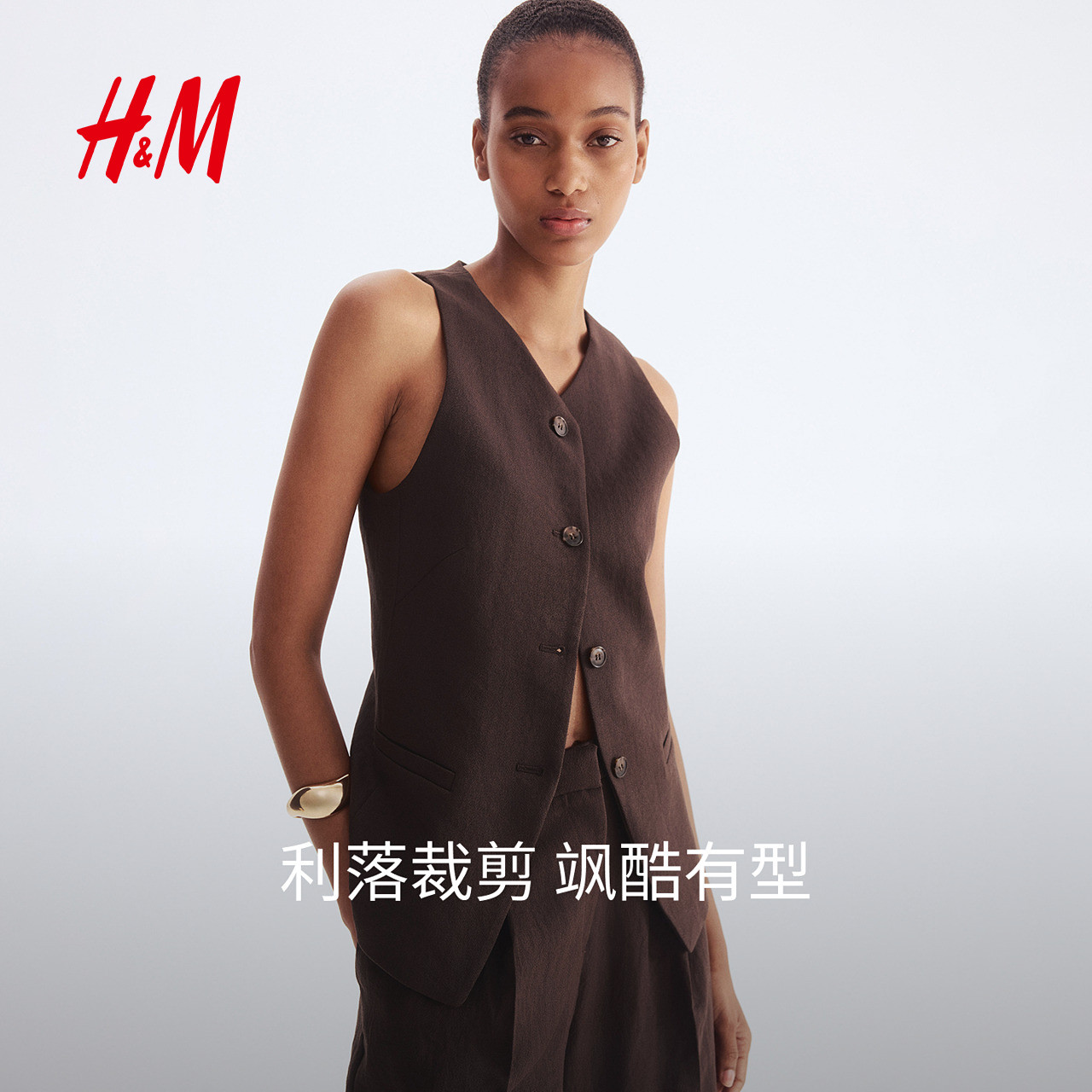 HM女装马夹2025冬季新款v领通勤无袖商务时尚休闲长马甲1288086